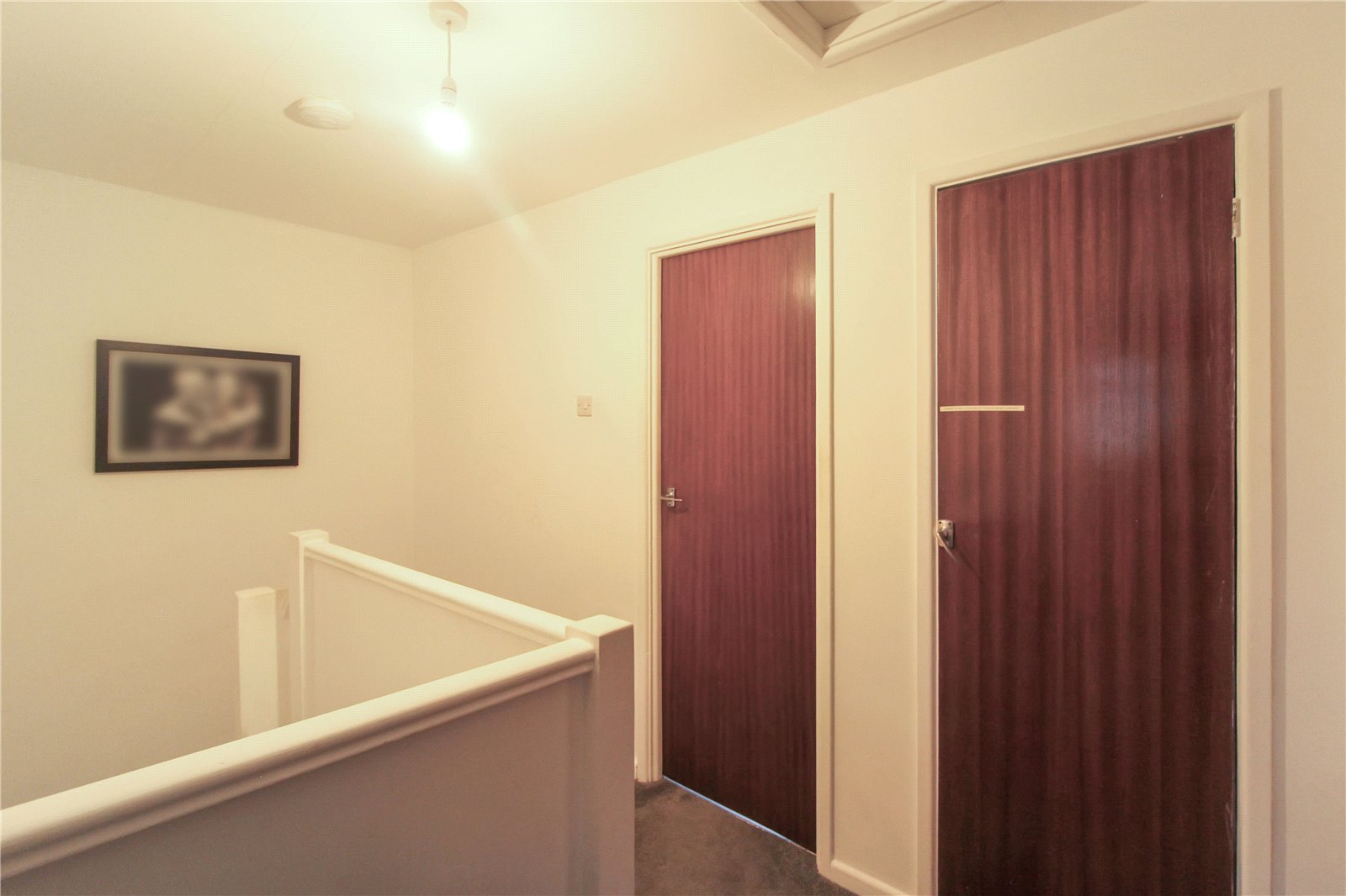 Carpeted stairs from the entrance hall leading up to the landing. Smooth plastered walls and ceiling, completed with ceiling light, fire alarm, and loft hatch. Doors leading to:
