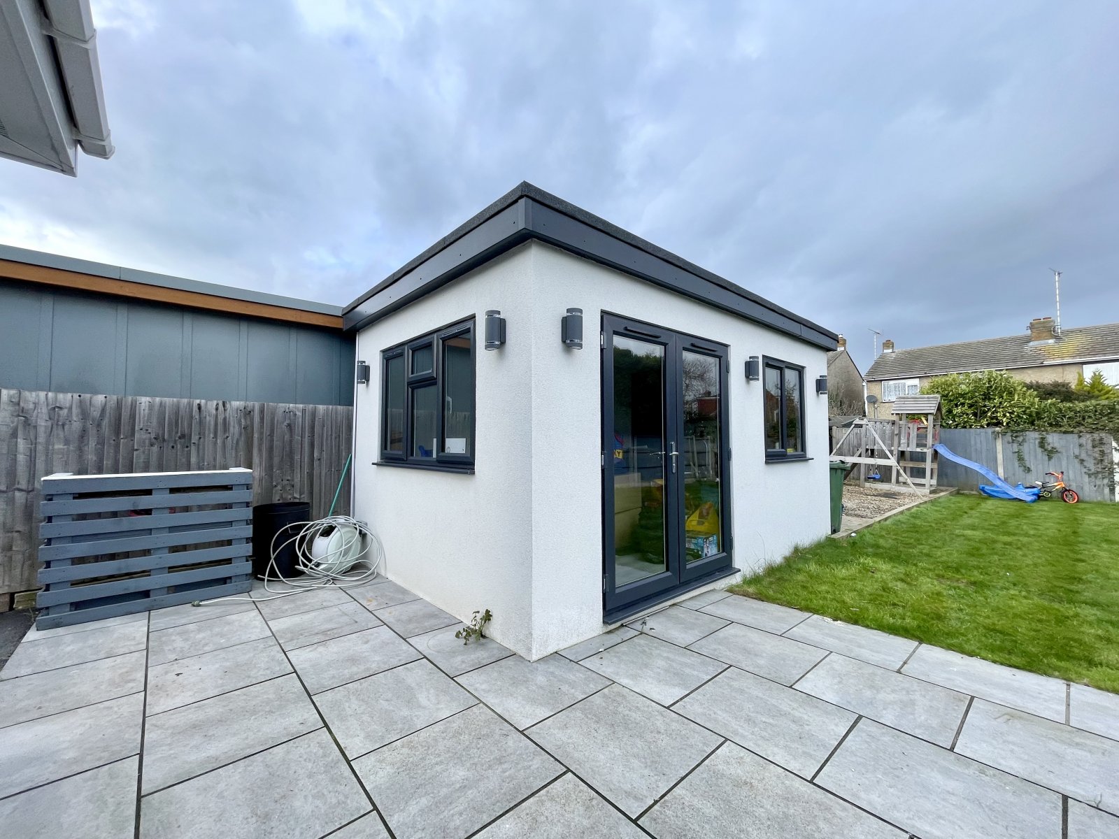 A beautifully presented three bedroom semi detached bungalow situated in a desirable residential location, close to local amenities and transport links. This wonderful home has been greatly improved throughout to an exceptional standard including a modern and contemporary fitted kitchen with central island unit with breakfast bar, a modern family bathroom and a large open plan lounge/dining room. The property further boasts a large home office/out building to rear with fitted units and integrated wine fridges, and ample off street parking to front for several vehicles. A MUST VIEW!