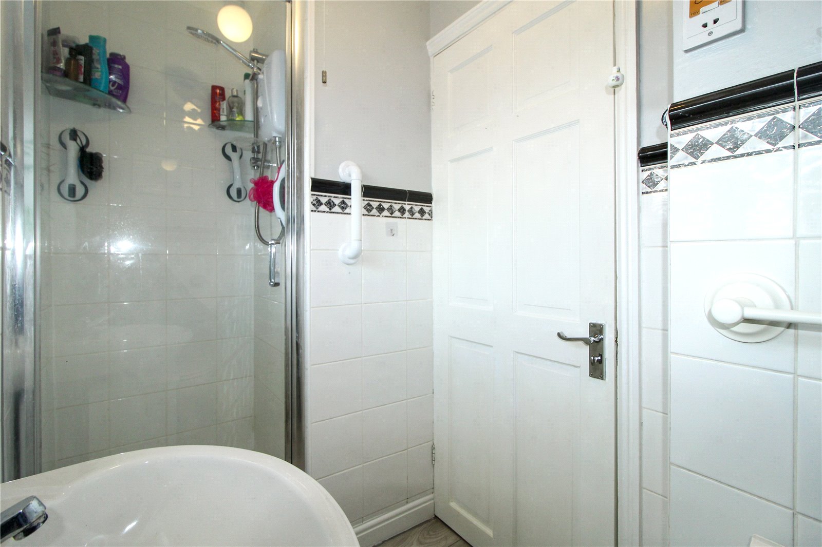 uPVC double obscure window to side. Fitted with a three-piece white suite comprising shower cubicle with chrome shower attachments, wash basin with chrome mixer tap and low-level w.c. Wood-effect laminate flooring. Radiator. Tiled to half height. Smooth plastered walls to the remainder. Coving to ceiling with ceiling light.