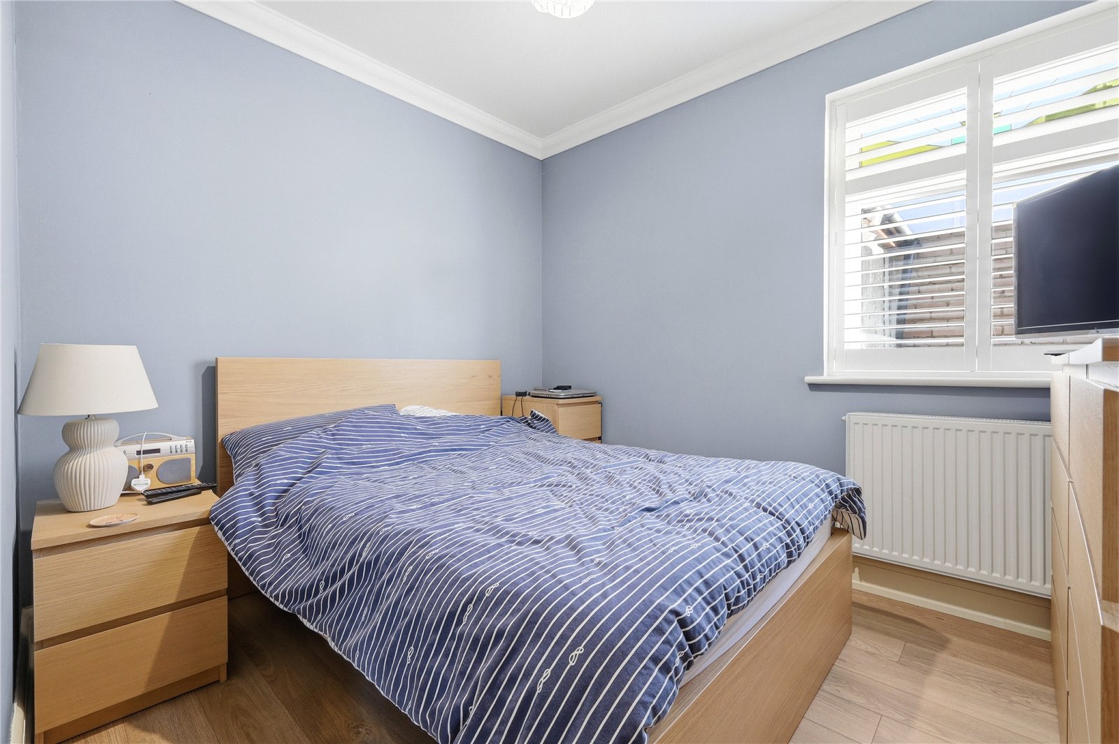 UPVC double glazed window to side with fitted plantation shutter. Wall mounted radiator. Wood effect laminate flooring. High level skirting. Coved cornice to smooth plastered ceiling.
