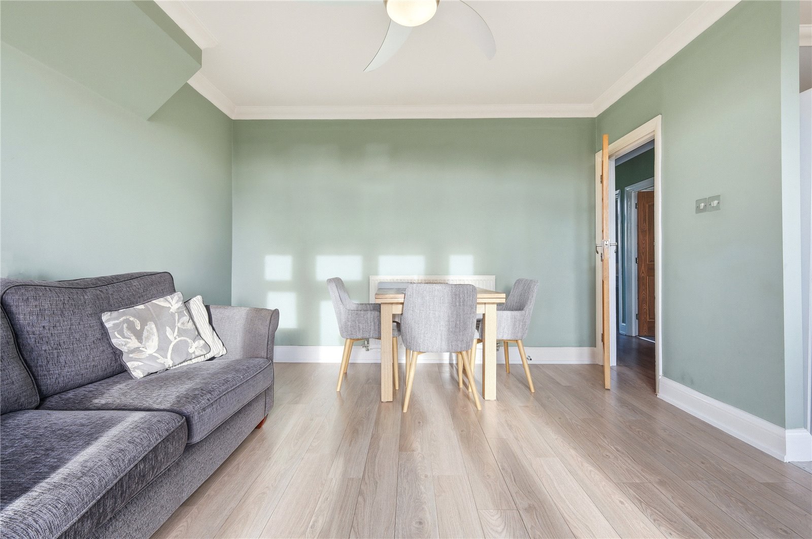 UPVC double glazed window to front with fitted plantation shutter. Wall mounted radiator. Wood effect laminate flooring. High level skirting. Coved cornice to smooth plastered ceiling.