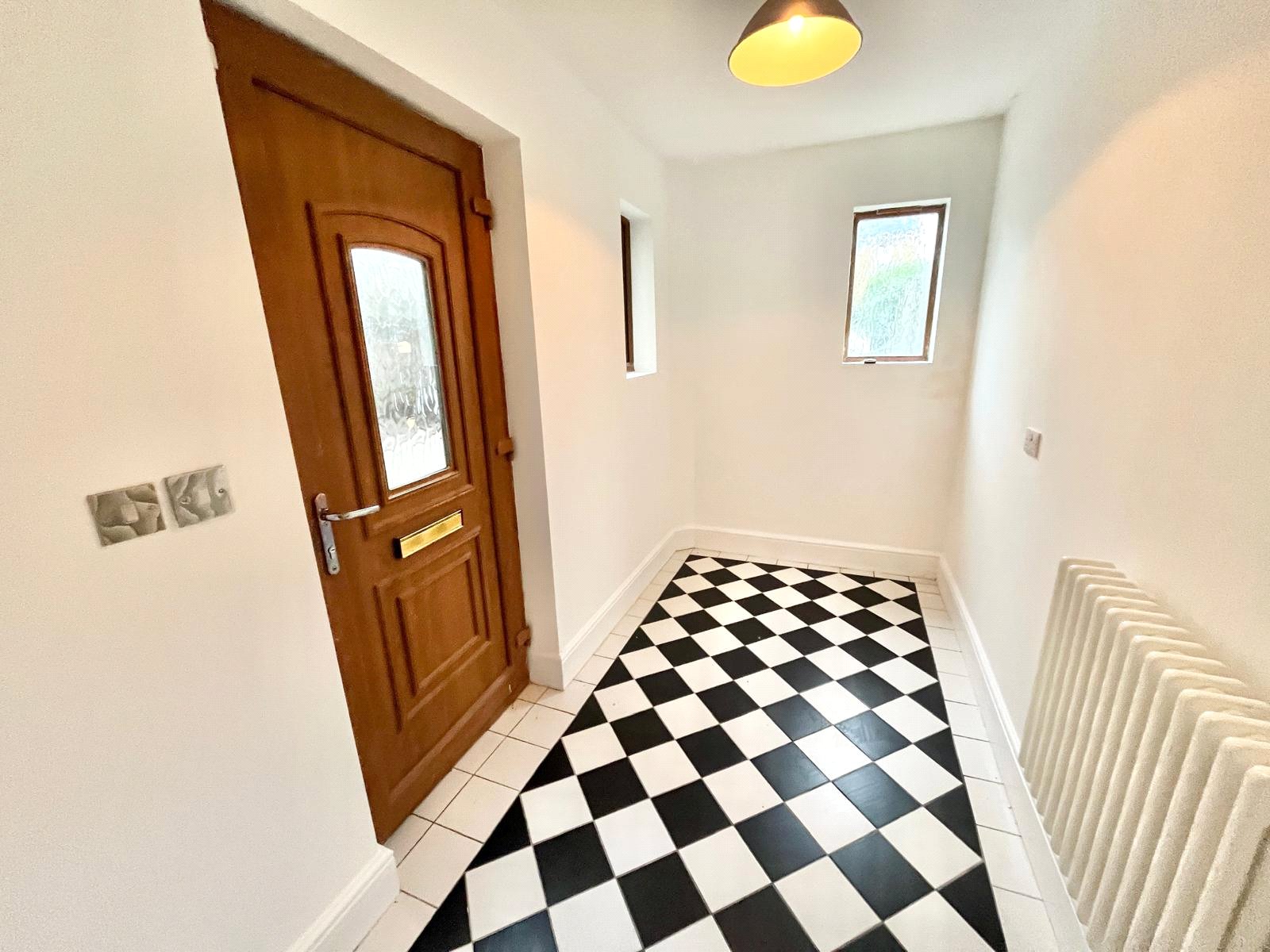 Approached via composite security door with inset glazed panels. UPVC double obscured glazed to front and to side. Chequerboard style tiled flooring. High level skirting. Wall mounted designer radiator. Staircase raising to accommodation with hand grab rail to side.