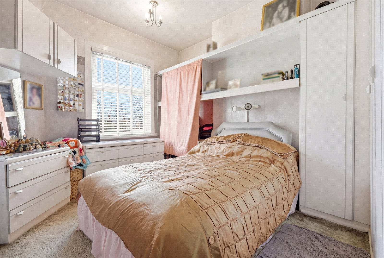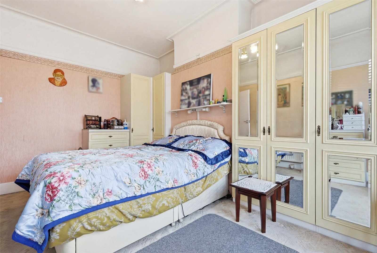 into bay. Large UPVC double glazed bay unit to front. Wall mounted radiator. High level skirting. Range of fitted wardrobe units. Feature picture rail. Coved ceiling.