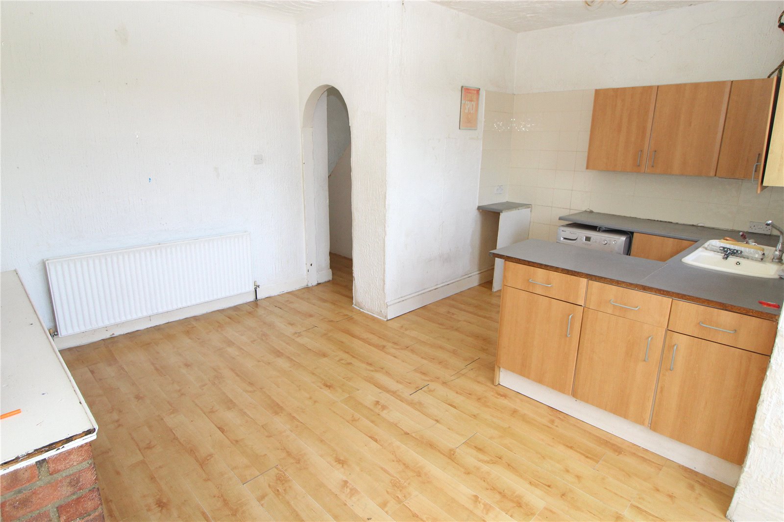 Upvc double glazed french doors to the rear aspect with windows adjacent. The kitchen is fitted with a range of base units with roll edge work surfaces incorporating a single drainer sink. Further matching wall mounted storage units. Space for oven. Space and plumbing for washing machine. Feature fireplace to the dining area.