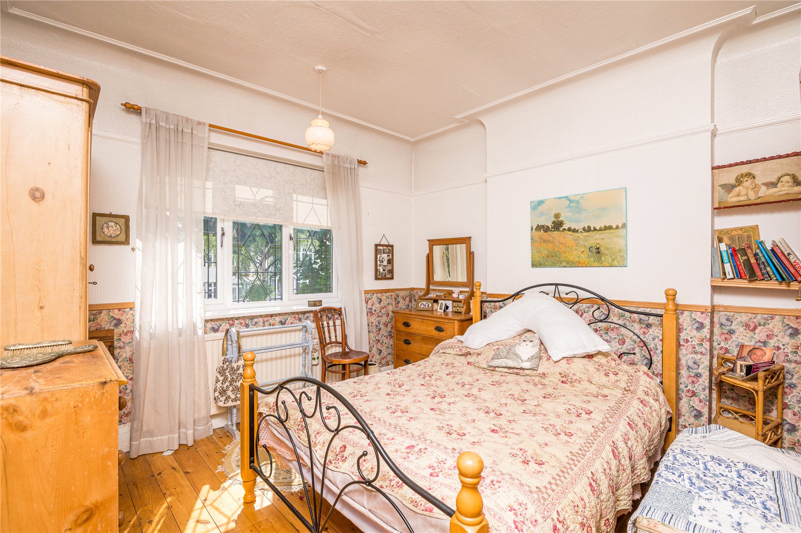 Double glazed leadlight window to rear overlooking the landscaped rear garden, with views of Priory Park beyond. Pitch pine flooring. Radiator. Range of built in bedroom furniture comprising two louvre fronted double wardrobe cupboards with overhead cabinets.