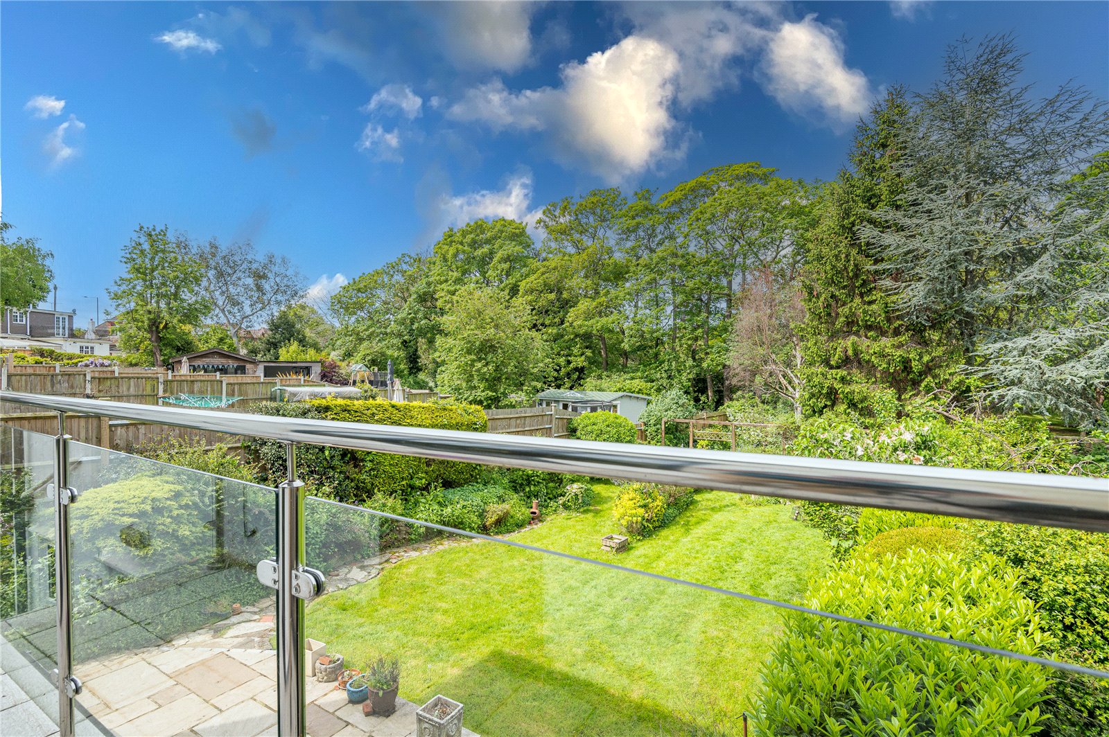 A contemporary steel and glass balustrade takes full advantage of the views across the landscaped garden to Priory Park beyond.