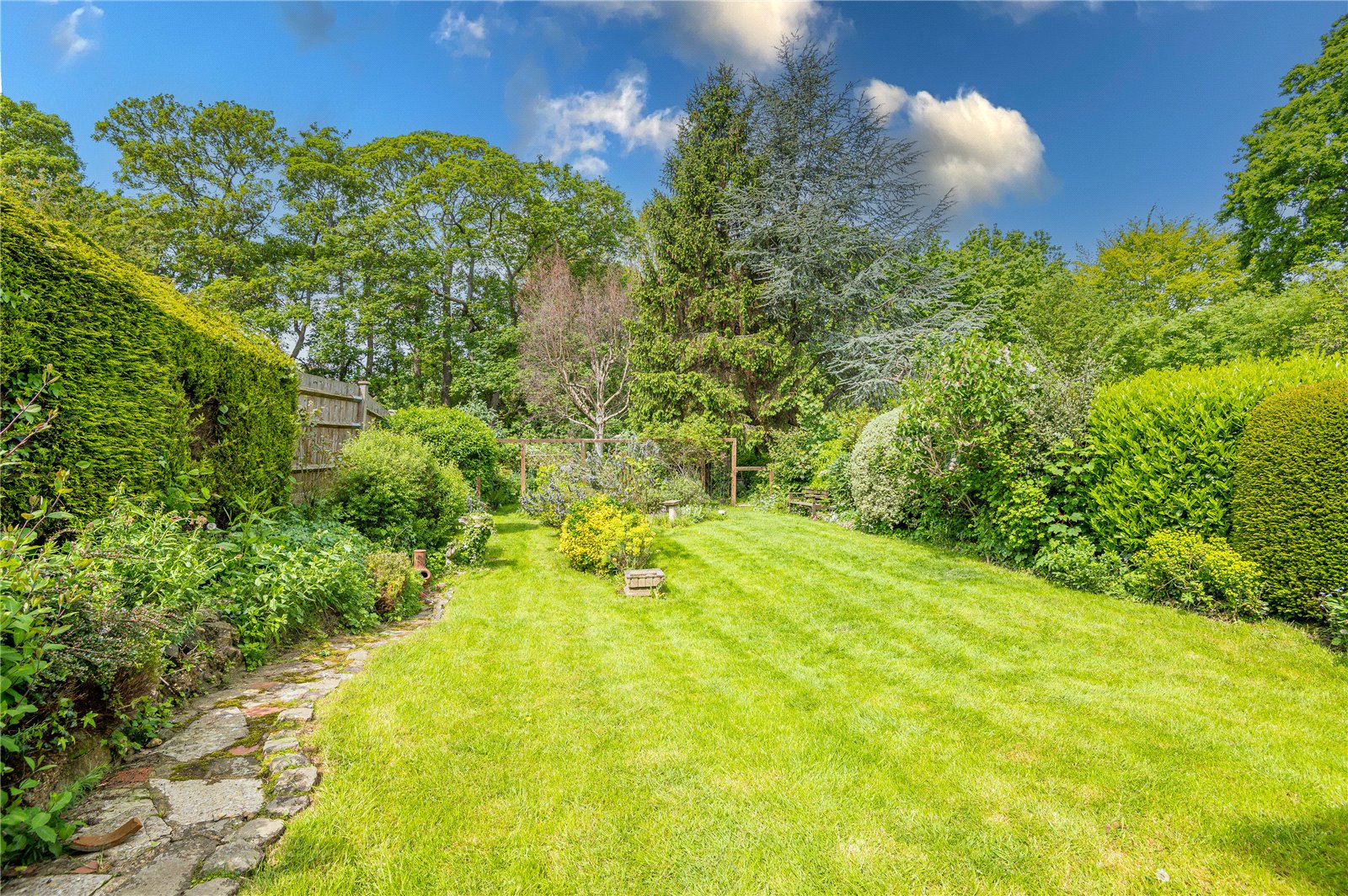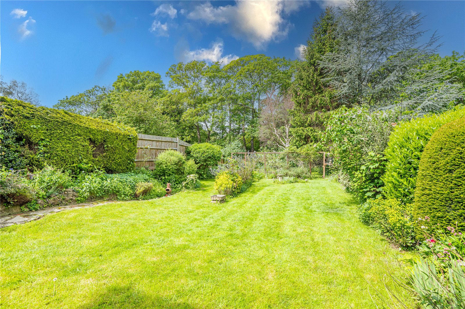 The rear garden is accessed from the first floor via the kitchen door, with a set of steps with timber balustrade leading down to the lower level. From the garden level accommodation, the garden commences with a full width coloured sandstone patio terrace, ideal for dining alfresco, with outside water supply and external lighting. Access to an underbuilt storage area to one side. The beautifully planted and mature established rear garden has an extensive lawned area, an array of annual and perennial plants and shrubs with feature planted beds, and an original walled rear boundary. Access to a natural water well, with a silver birch shaded sitting area.