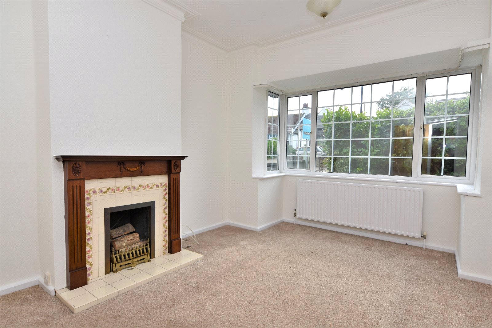 uPVC 'Georgian style' double glazed bow window to front aspect. Further uPVC 'Georgian style' double glazed window to rear aspect. Original wrought iron decorative fireplace. Radiator. Textured ceiling.