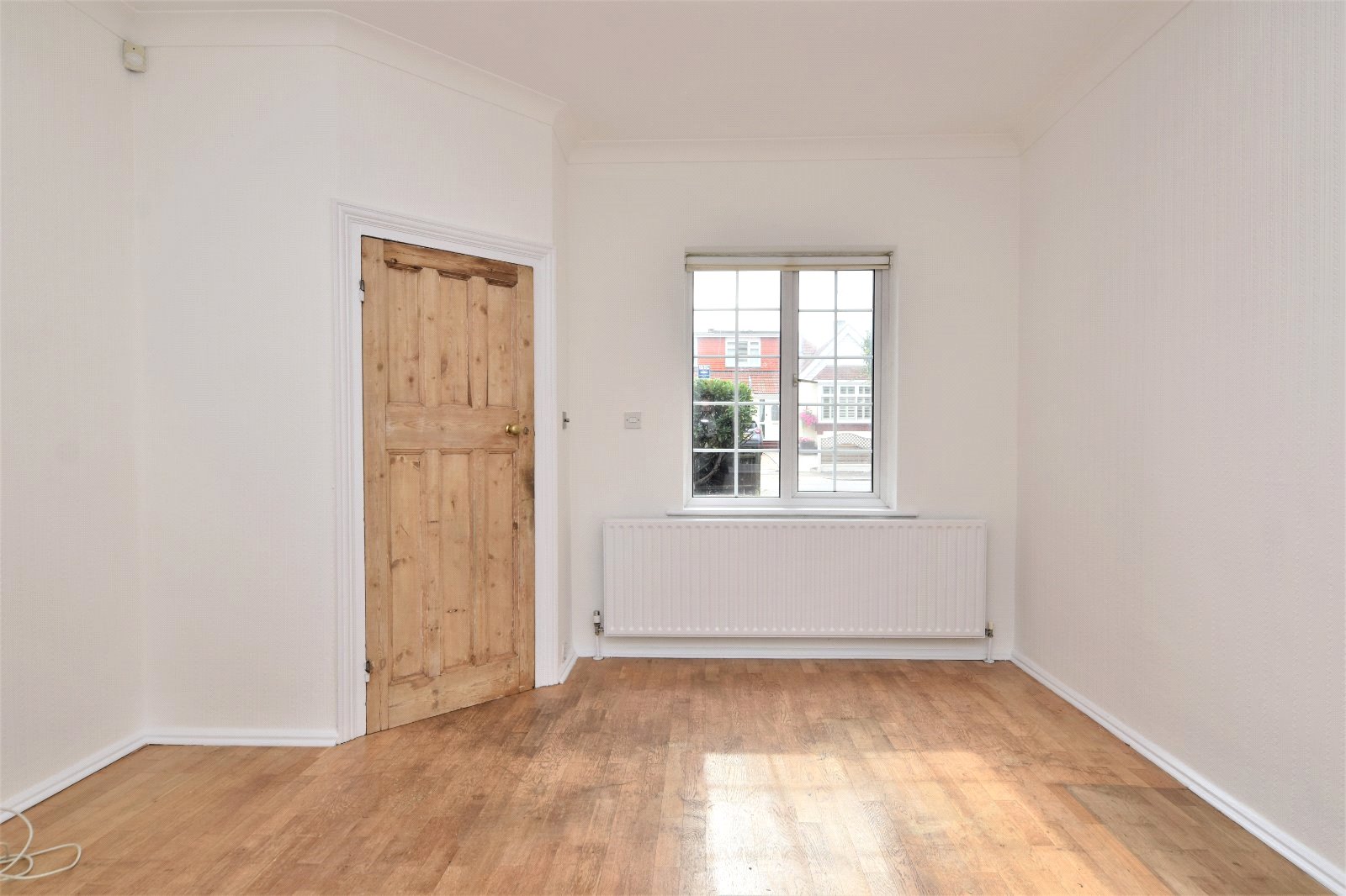 Stripped panelled doors to Living Room, Dining Room and Kitchen. Wooden style flooring. Stairs rising to first floor accommodation. Dado rail. Thermostat control panel. Radiator. Cornice to papered ceiling.