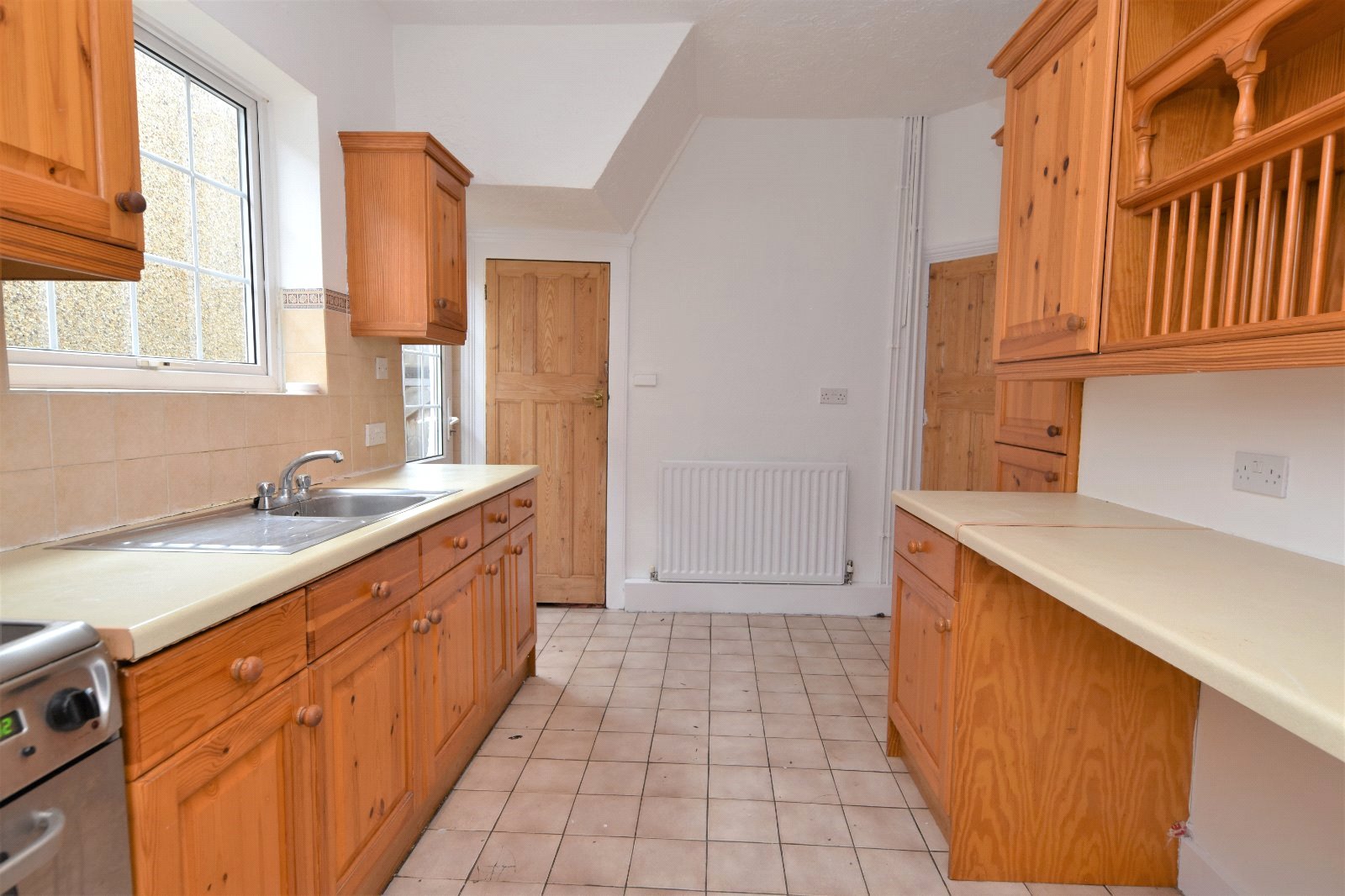 uPVC 'Georgian style' double glazed window to rear aspect. Tiled flooring. Panelled door to built in larder style cupboard with ample shelving. Worksurfaces space with under counter recess under for appliances and splashback tiling. Radiator. Tiled flooring. Further panelled door to;