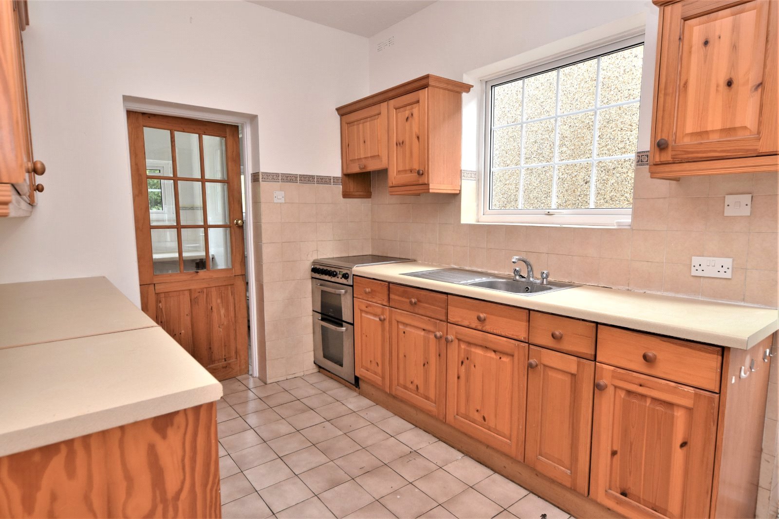 uPVC 'Georgian style' double glazed window to side aspect. Matching obscure uPVC 'Georgian style' double glazed door to sideway access to Garden. Panelled door to recessed storage cupboard with wall mounted 'Worcester' boiler and uPVC 'Georgian style' double glazed window to side. The Kitchen is fitted with a range of eye and base level units with rolled edge working surfaces over inset with single drainer stainless steel sink unit with mixer tap over. Freestanding 'Creda' double oven with four ring electric hob over and concealed extractor canopy over. Working surface area with under counter recess for appliances. 'Dresser' style wall unit inset with shelving and plate rack. Tiled flooring. Radiator. Textured ceiling. Multi pane glazed doors through to;