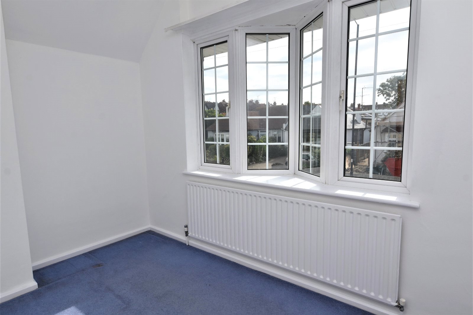 uPVC 'Georgian style' double glazed part oriel window to rear aspect. Radiator. Papered ceiling.