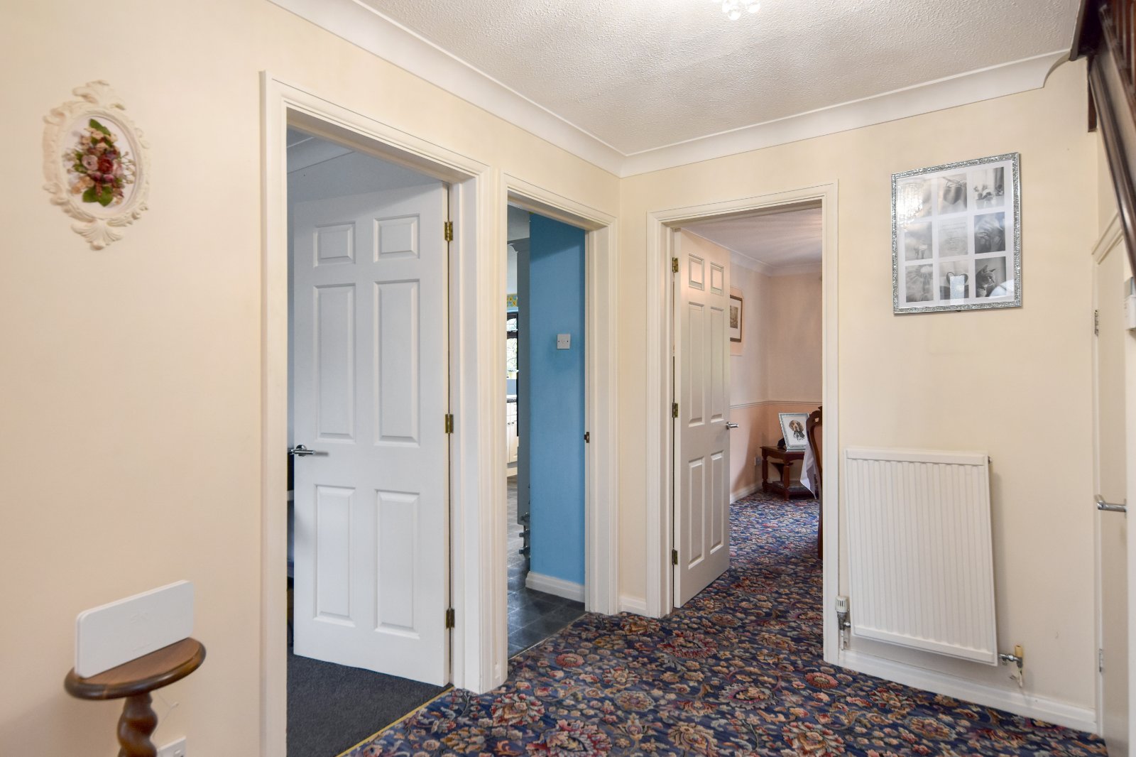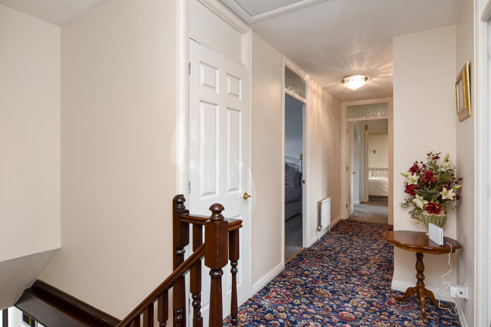 Panelled doors to Bedrooms and Family Bathroom. Panelled door to recessed airing cupboard with linen shelving. Textured ceiling with access to loft space via pull down ladder.