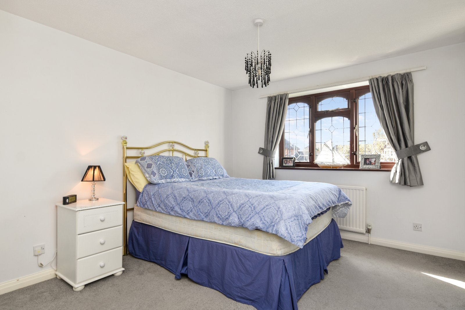 Attractive 'bow' style uPVC double glazed leaded window to front aspect. Comprehensive range of fitted part mirror fronted wardrobes to one aspect. Radiator. Textured ceiling.