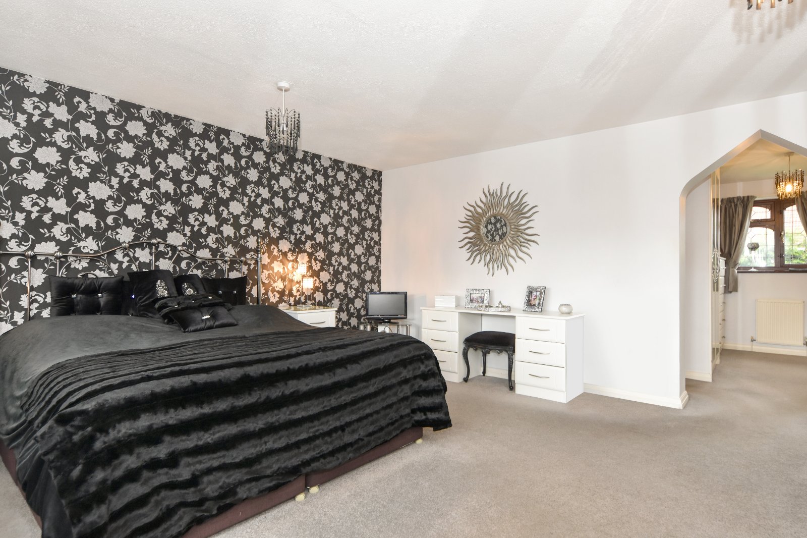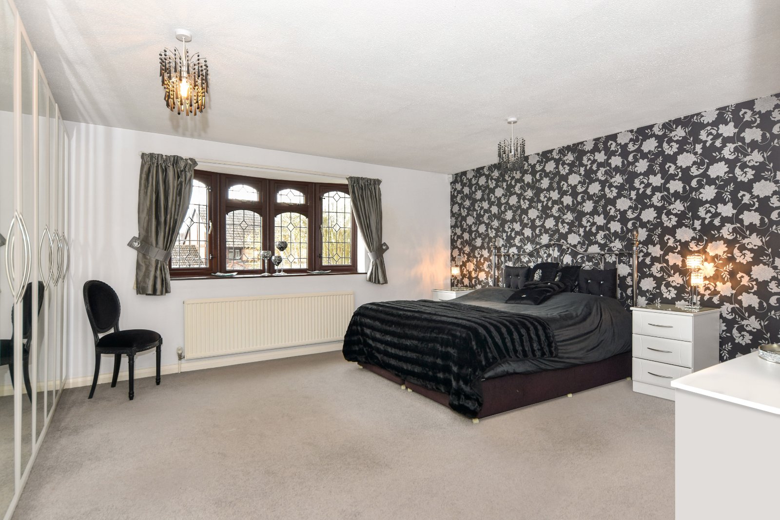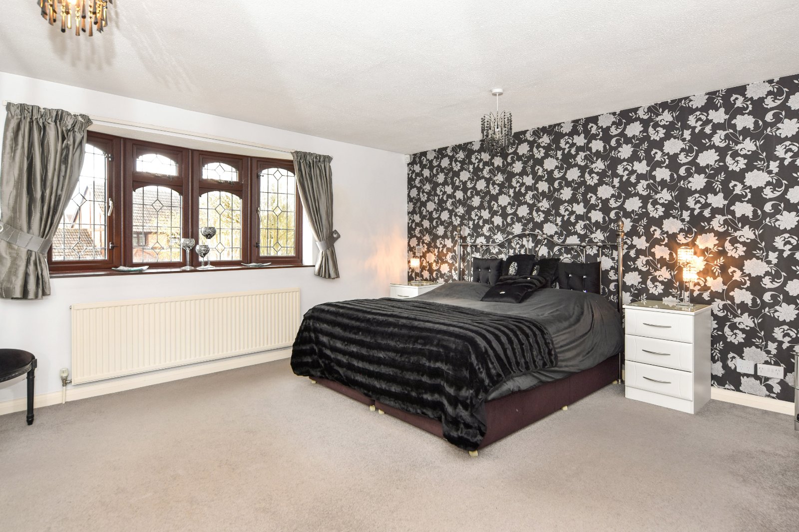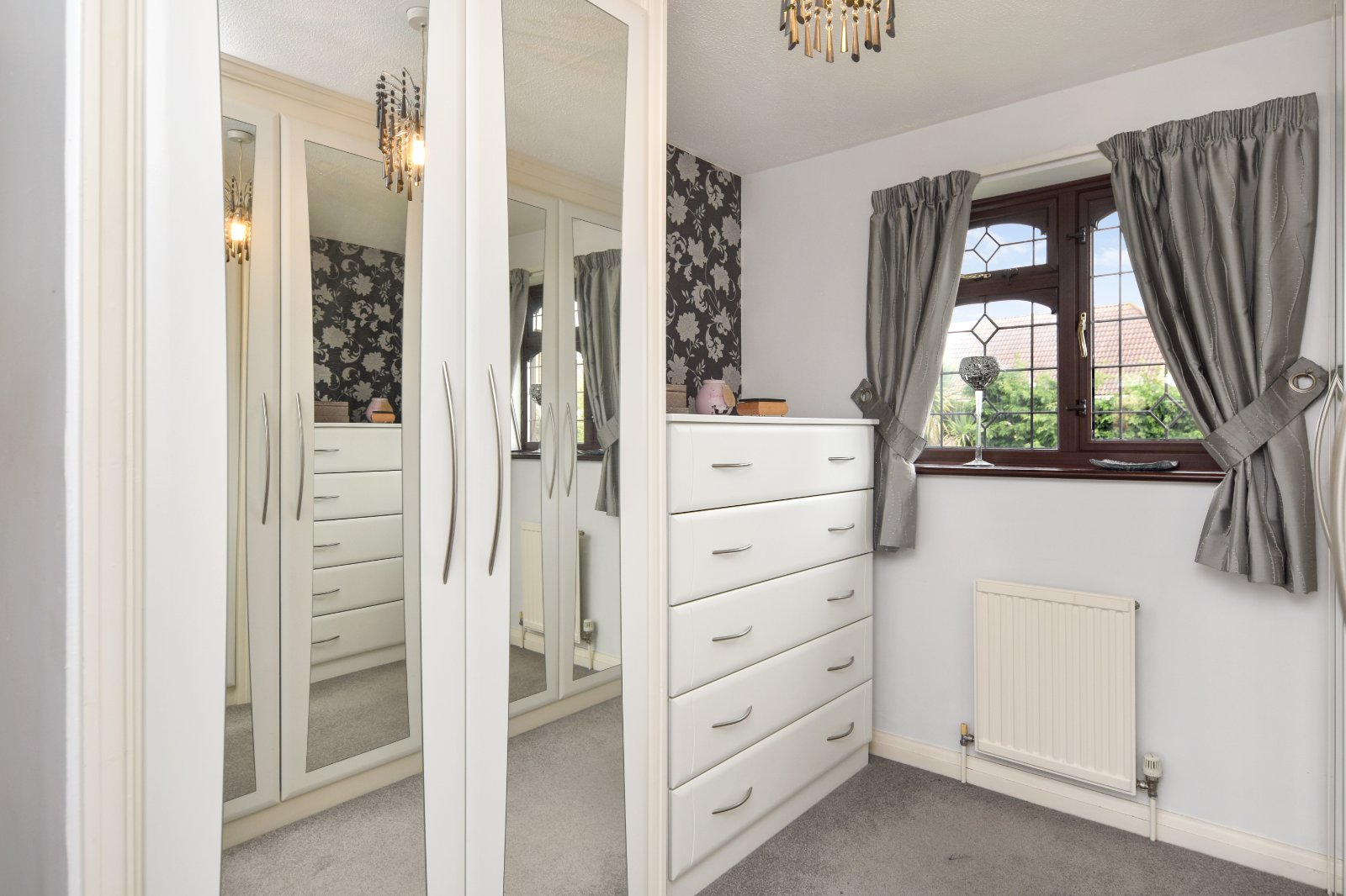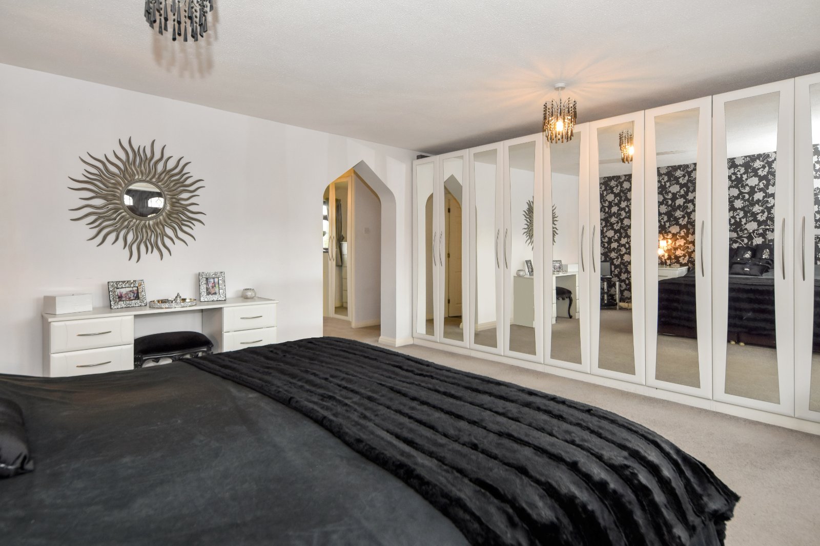 uPVC double glazed leaded window to front aspect. The bedroom offers a four door recessed wardrobe with storage cupboards over. Radiator. Textured ceiling. Panelled door to;