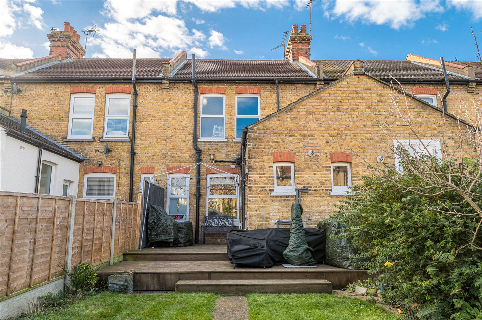 The property benefits from a well landscaped rear garden with raised decking area to the rear of the property and a further raised paved area to the rear of the garden. Rear access. Shed to remain.