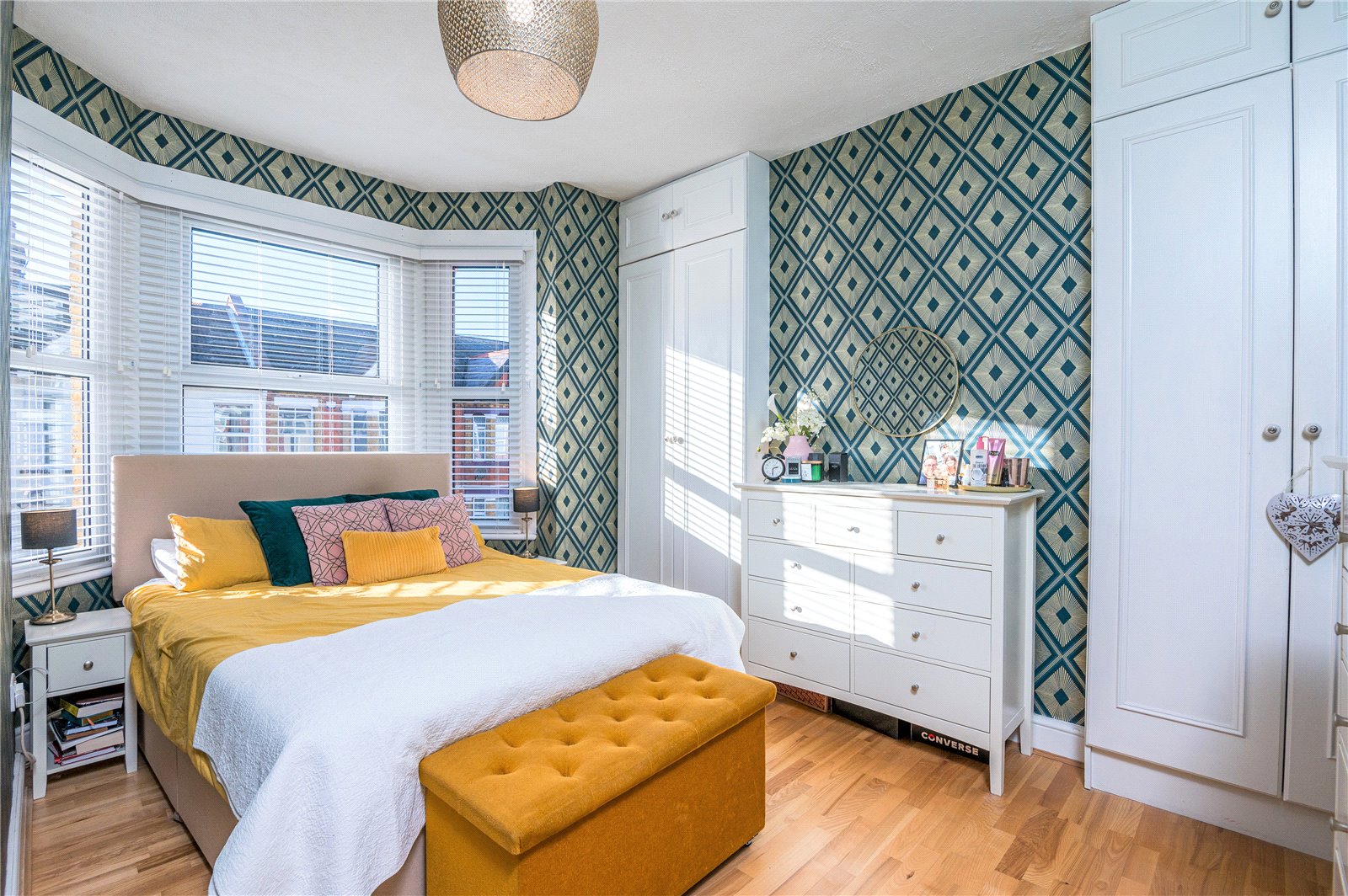 Plus fitted wardrobes. UPVC double glazed bay window unit to front. Two full height built in wardrobes. High level skirting. Wood effect laminate flooring.