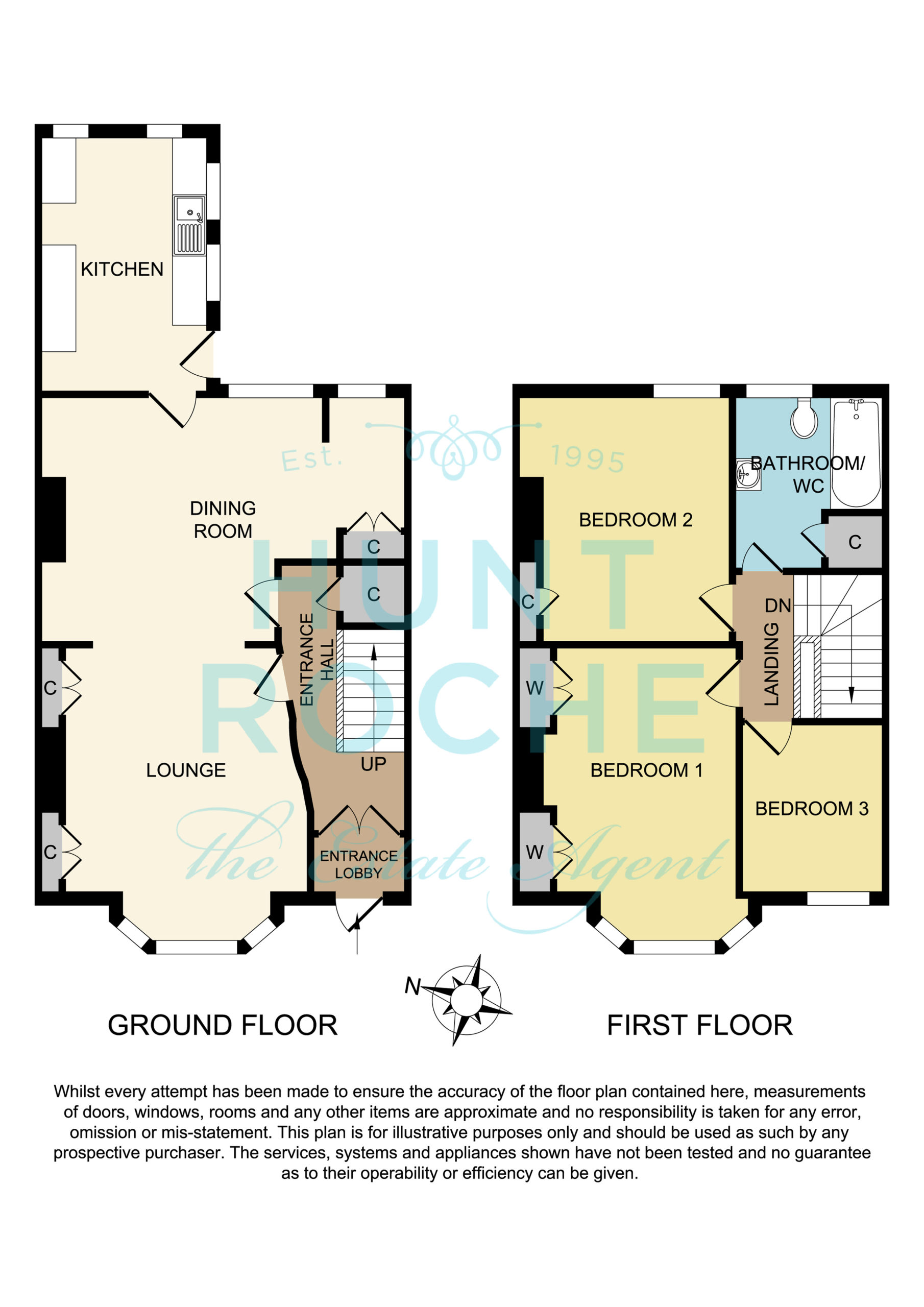 Obscure double glazed door to rear garden. Two UPVC double glazed windows adjacent. Two further windows to rear. The kitchen is fitted with a range of base and eye level cabinets incorporating hardwood squared edge working surface. inset stainless steel sink with drainer unit and mixer tap. Space for gas oven. Space for fridge/freezer. Space and plumbing for washing machine and dishwasher. Wall mounted 'Vaillant' gas fired boiler. Part tiled walls. Fully tiled splashbacks. Tiled floor. Smooth plastered ceiling.