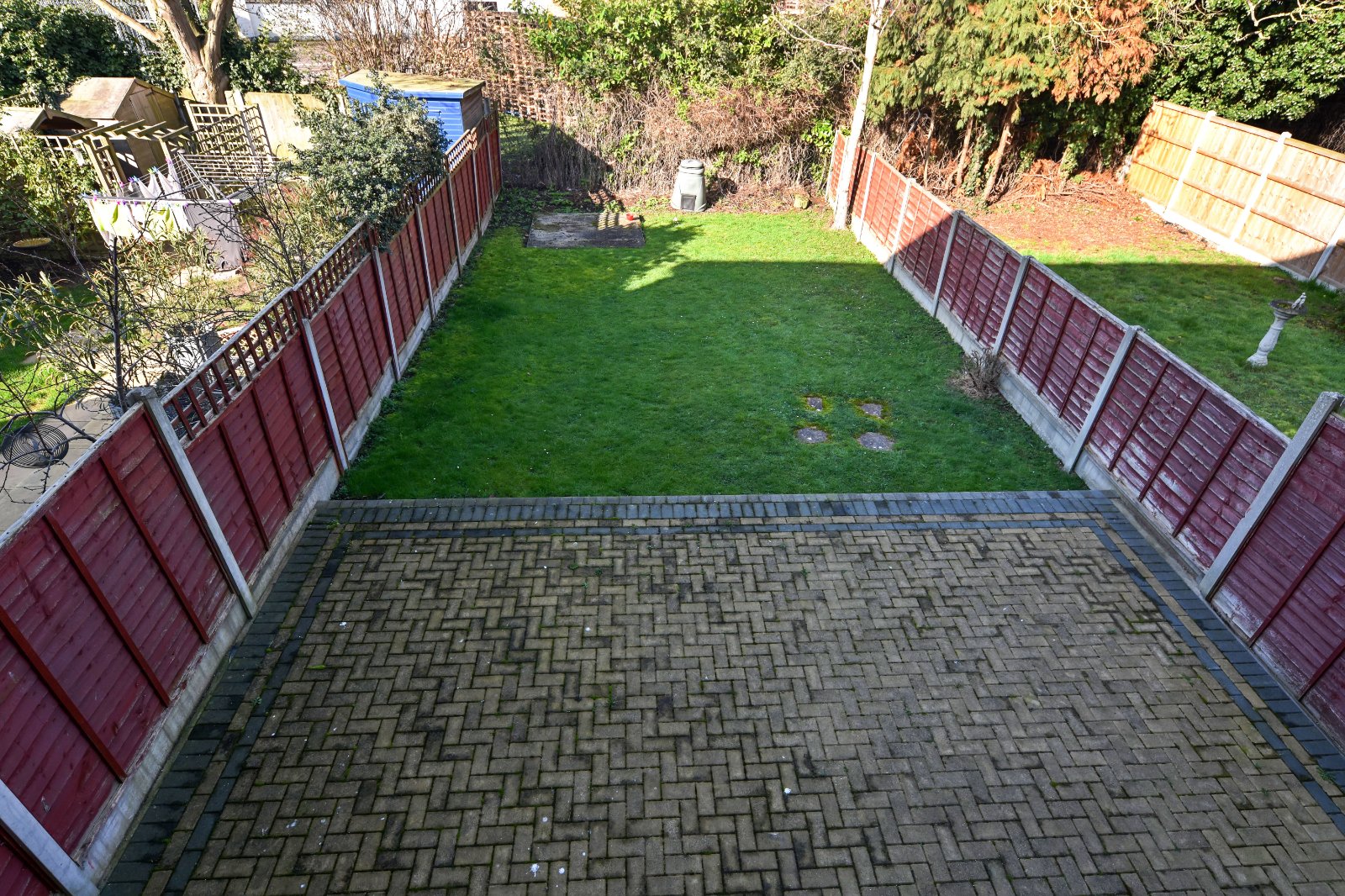 The west-facing rear garden measures approximately 60ft x 25ft and is accessed via the Kitchen. The garden commences with a generous block-paved patio seating area, ideal for outdoor entertaining, with the remainder predominantly laid to lawn. An up-and-over door provides convenient access to the garage.