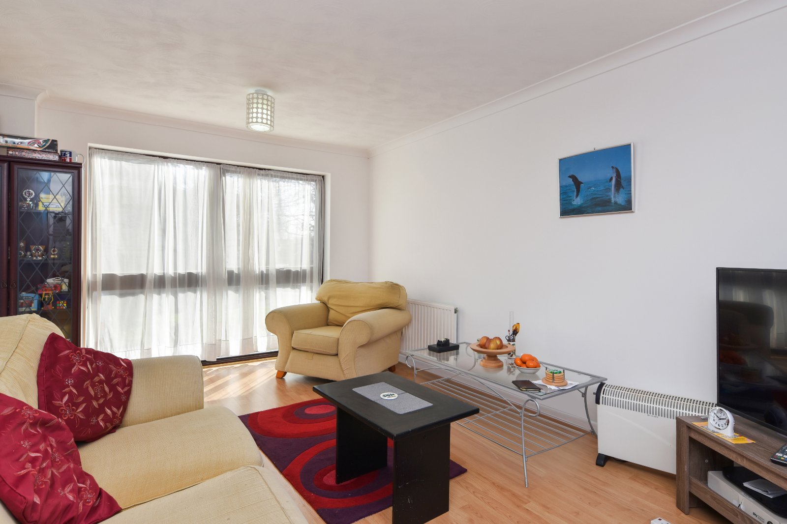 A bright Living Room benefiting from an almost full-height double glazed window to the front aspect and a pair of west-facing double glazed sliding doors to the rear, opening onto a Juliet-style balcony providing views over the rear Garden. The room features laminate wood-effect flooring, two radiators and coving to textured ceiling.