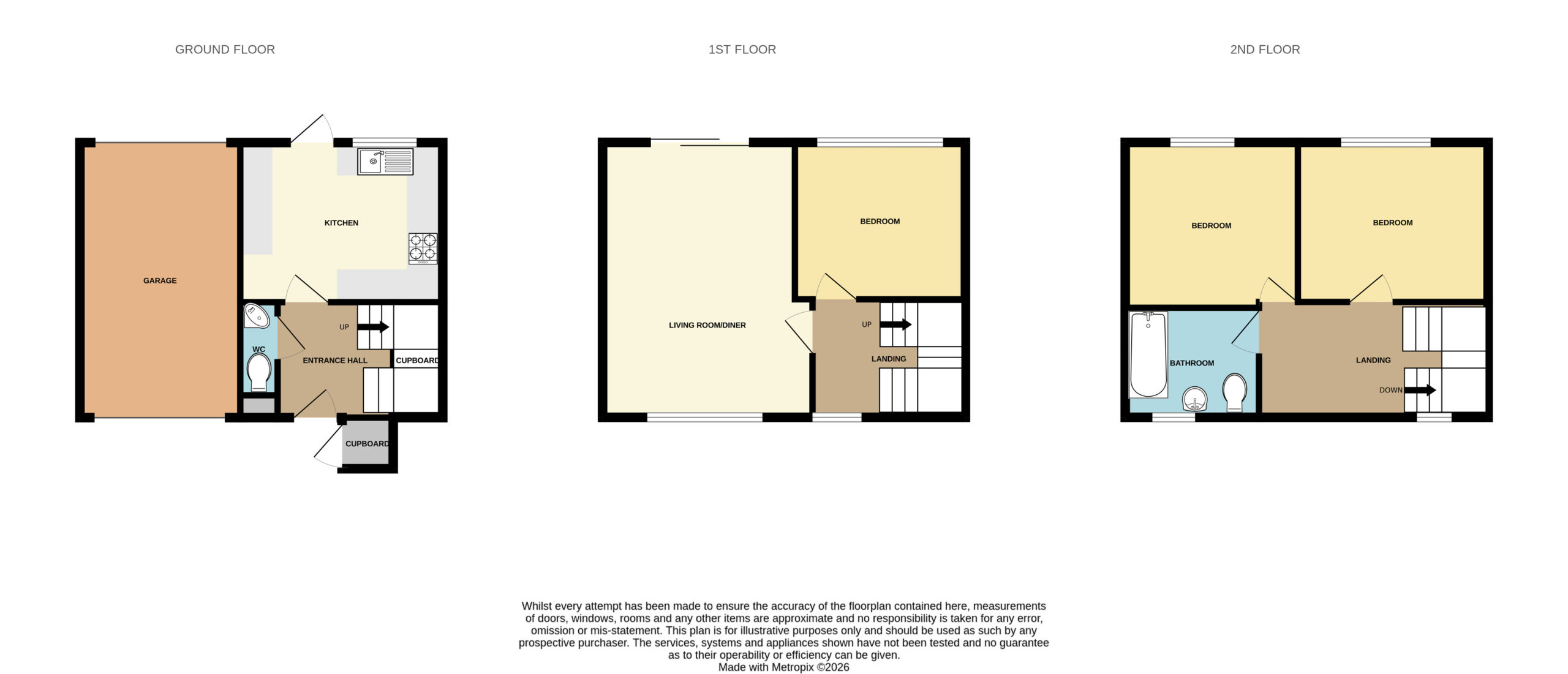 Recently redecorated throughout, this home offers well-planned accommodation arranged over three floors. The ground floor comprises a Kitchen together with a convenient guest cloakroom/wc. To the first floor, there is a generous double bedroom and a bright dual-aspect living room that enjoys excellent natural light. The top floor provides a recently upgraded contemporary three-piece family bathroom along with two further well-proportioned double bedrooms.