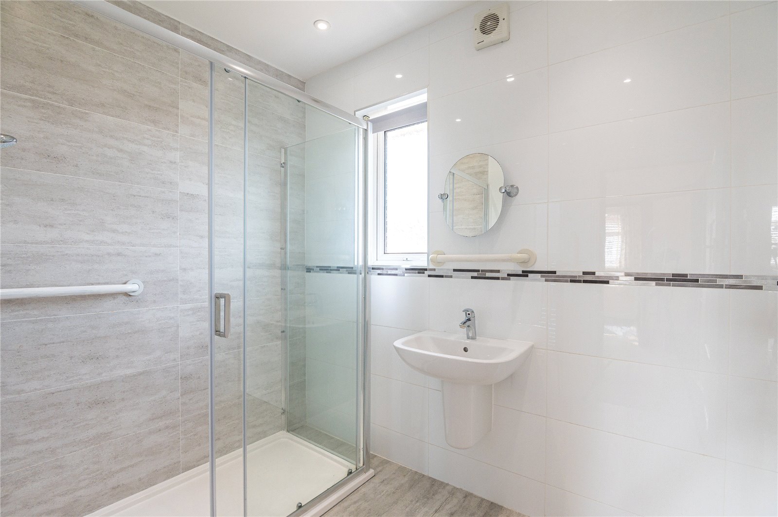 UPVC double obscured glazed window to rear. Fitted with a modern two piece suite comprising wall mounted wash hand basin with mixer tap and larger than average walk-in shower cubicle with wall mounted mixer, adjustable showerhead, glass shower screen, mobility hand grab rail. Chrome heated towel rail. Fully tiled walls. Fully tiled floors. Smooth plastered ceiling with recessed LED lighting. Wall mounted extractor fan.