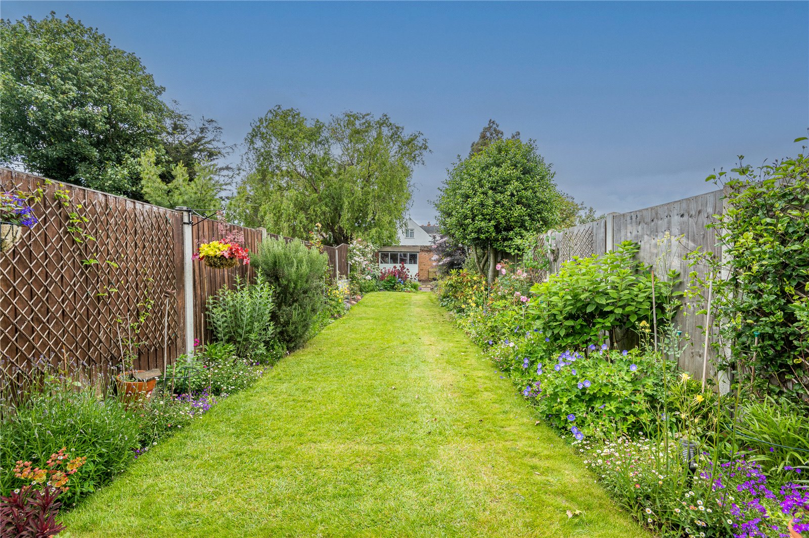 The property benefits from a beautifully established South backing rear garden which is mostly laid to lawn with mature planted borders offering a variety of trees and plants. Crazy paved patio area to rear of conservatory. Further concrete hard standing to rear. Timber framed storage shed to remain.