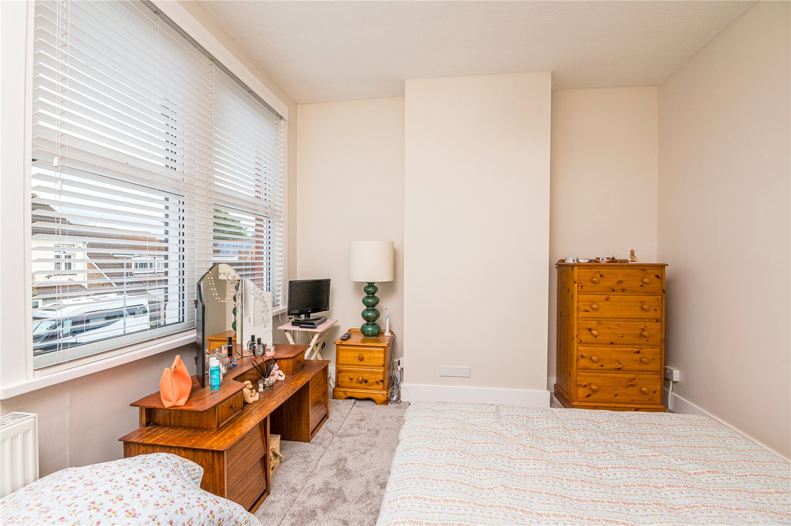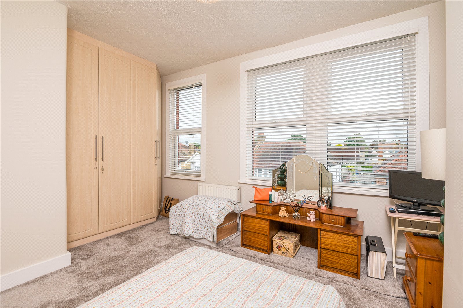 Two UPV double glazed windows to front. Wall mounted radiator. Extensive range of fitted wardrobe units. High level skirting.