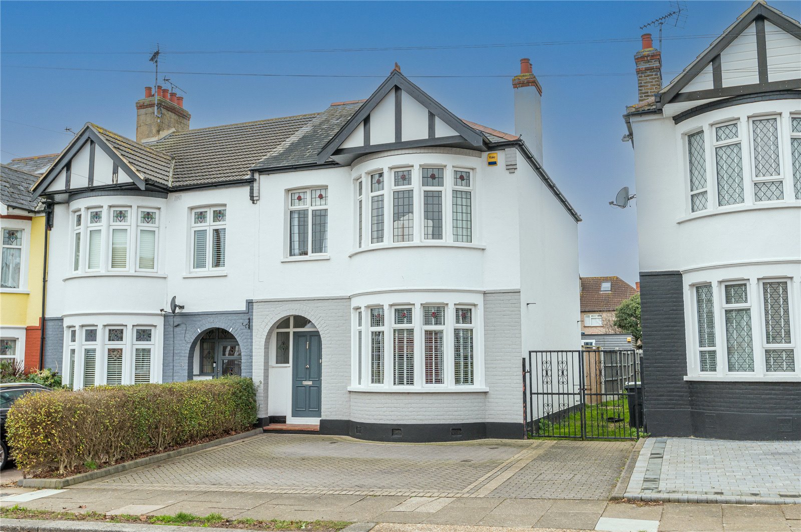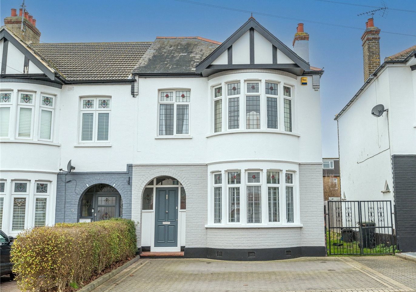 The property benefits from a good size block paved driveway, providing ample off street parking for two vehicles. Mature planted border to side. Access to side via metal gates.