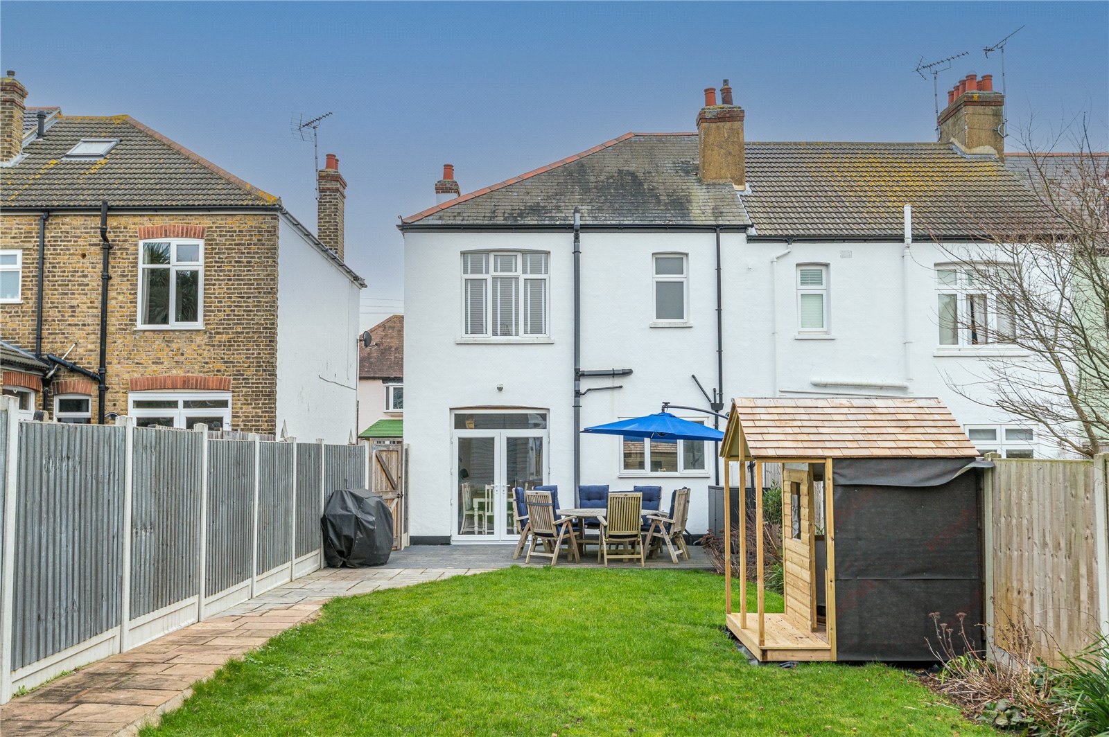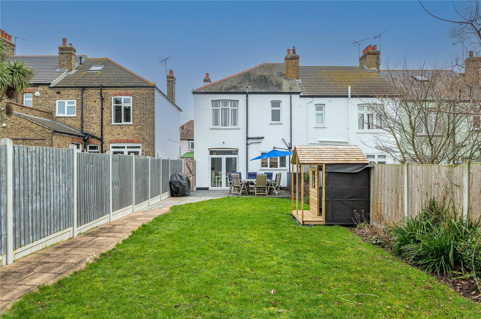 An immaculately presented three bedroom semi detached character house situated in the popular Southchurch Park area, only a short walk to the seafront and mainline railway station. This wonderful family home has been completely refurbished throughout by the current owners, including a superb "open plan" Kitchen/Dining room with double doors leading to the West backing rear garden- the real hub of house! The property further benefits from a newly constructed garden room/home office and off street parking to front for two vehicles - A Must View!