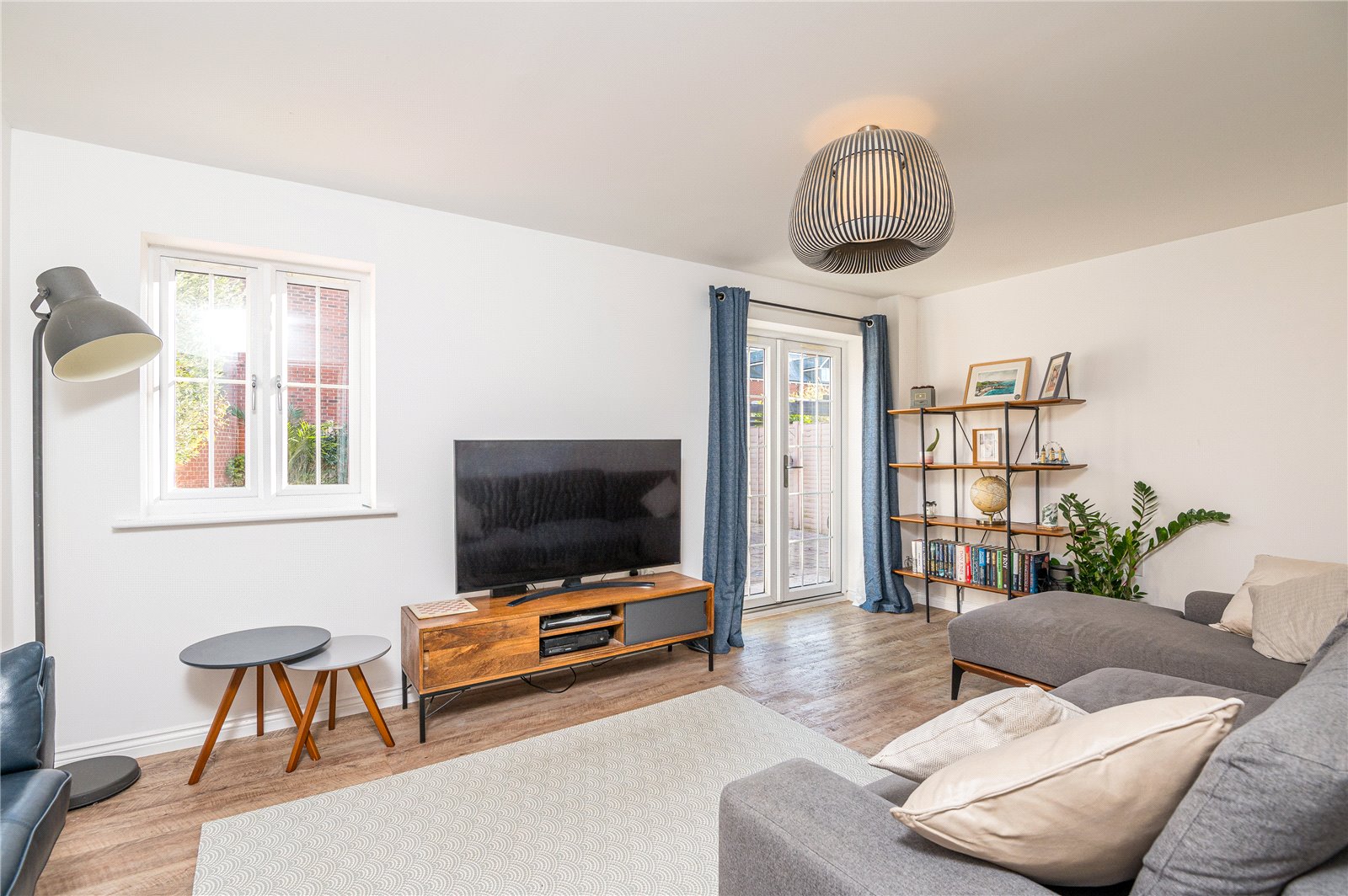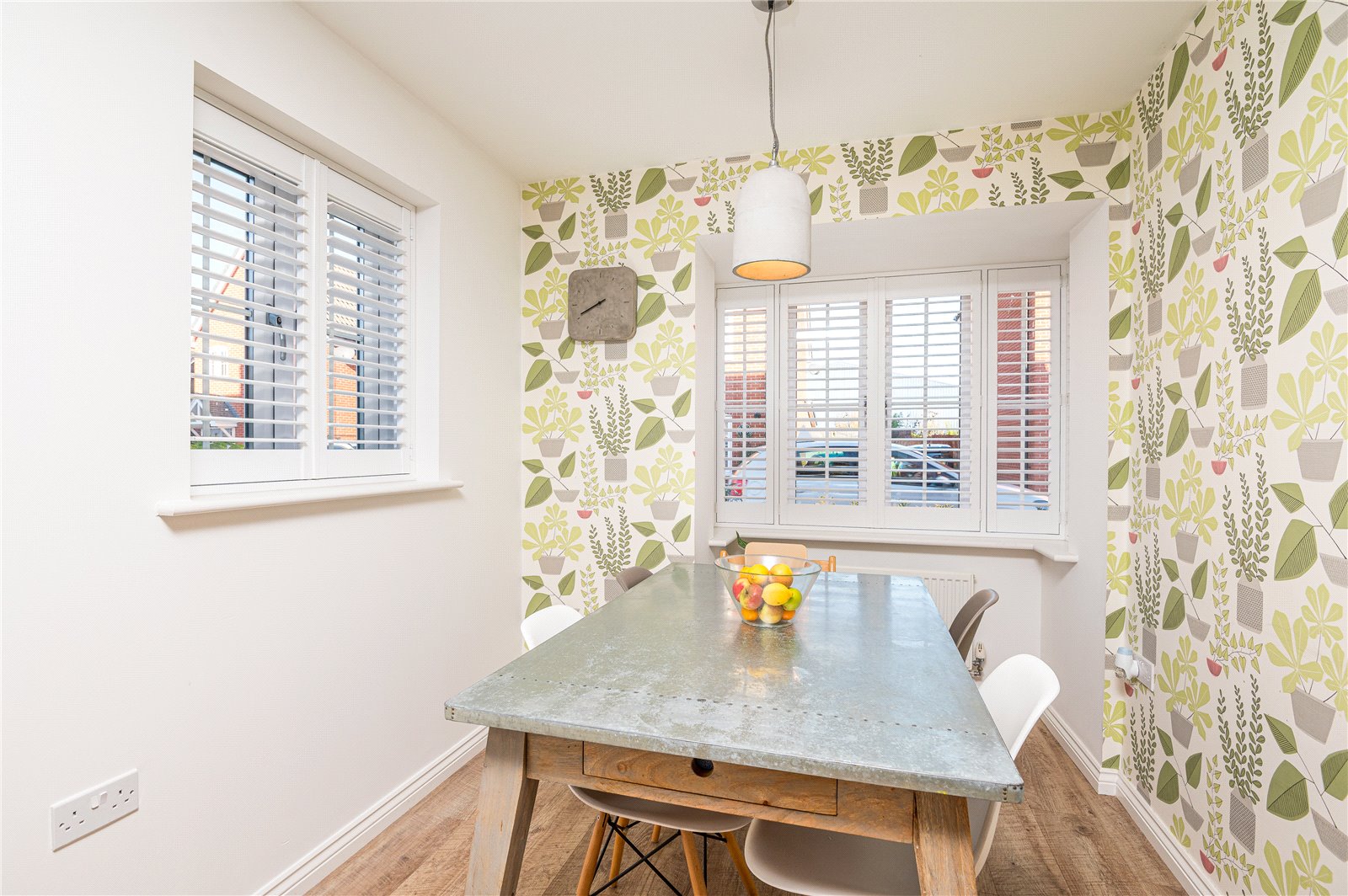 An impressive dual aspect room with uPVC double glazed multi pane French doors giving access to the rear garden, uPVC double glazed multi pane square bay window to front with bespoke fitted plantation shutter, and a further uPVC double glazed multi pane window overlooking the rear garden. Amtico oak effect flooring. Two radiators. Television aerial point. Smooth plastered ceiling.