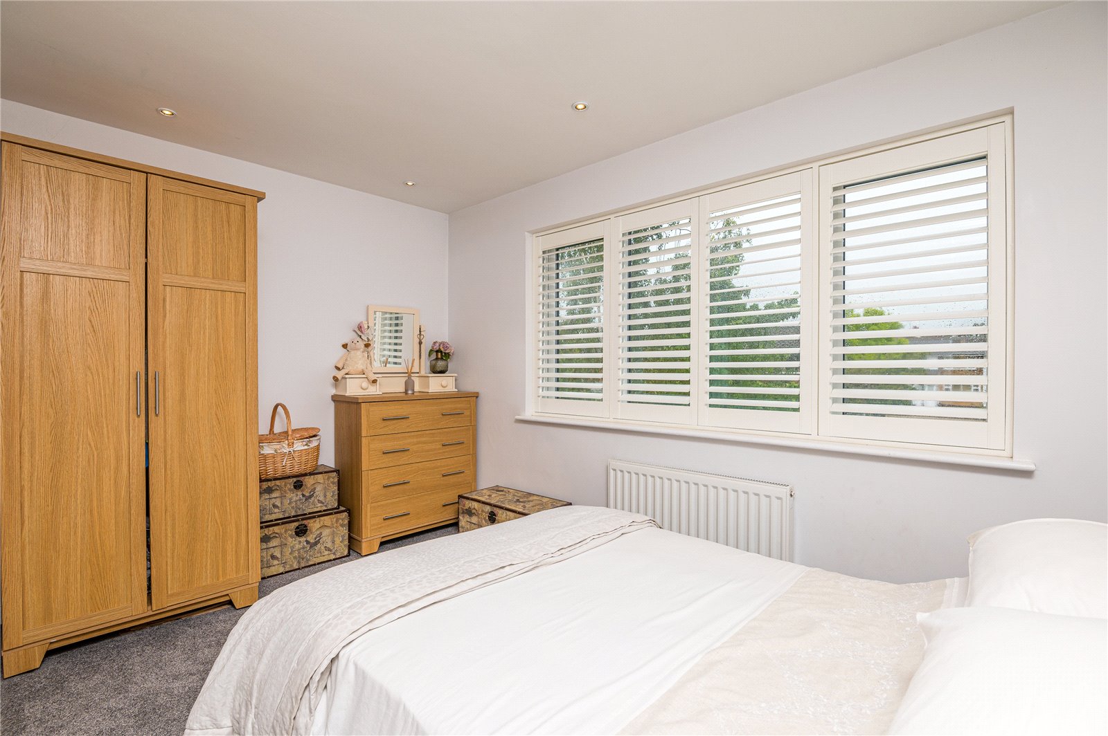 Upvc double glazed window to the front aspect with shutter blinds. Radiator and smooth plastered ceiling with inset spot lighting. Range of fitted wardrobes.