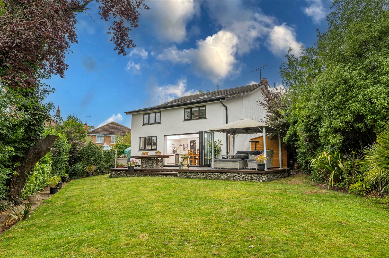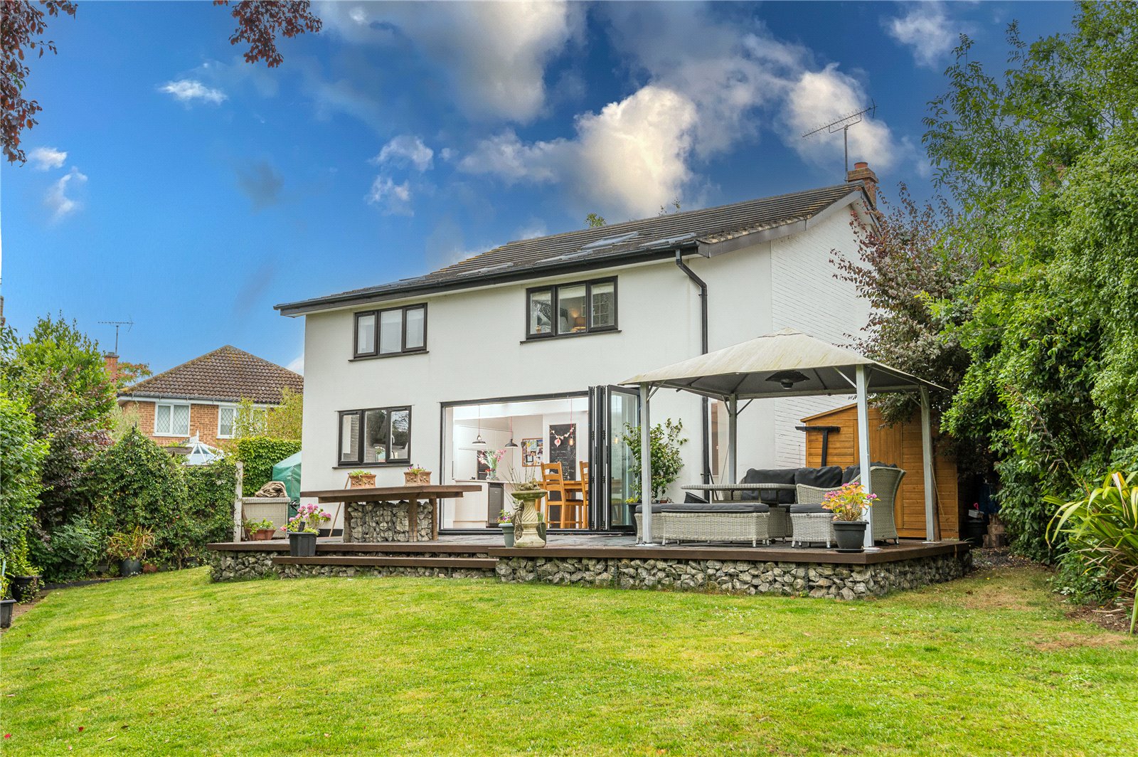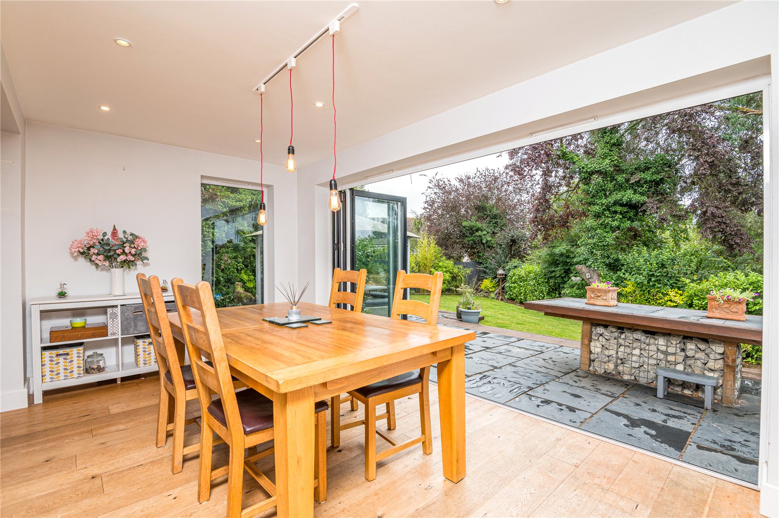Double glazed windows to the side and rear with double glazed bi-folding doors overlooking the landscaped rear garden.