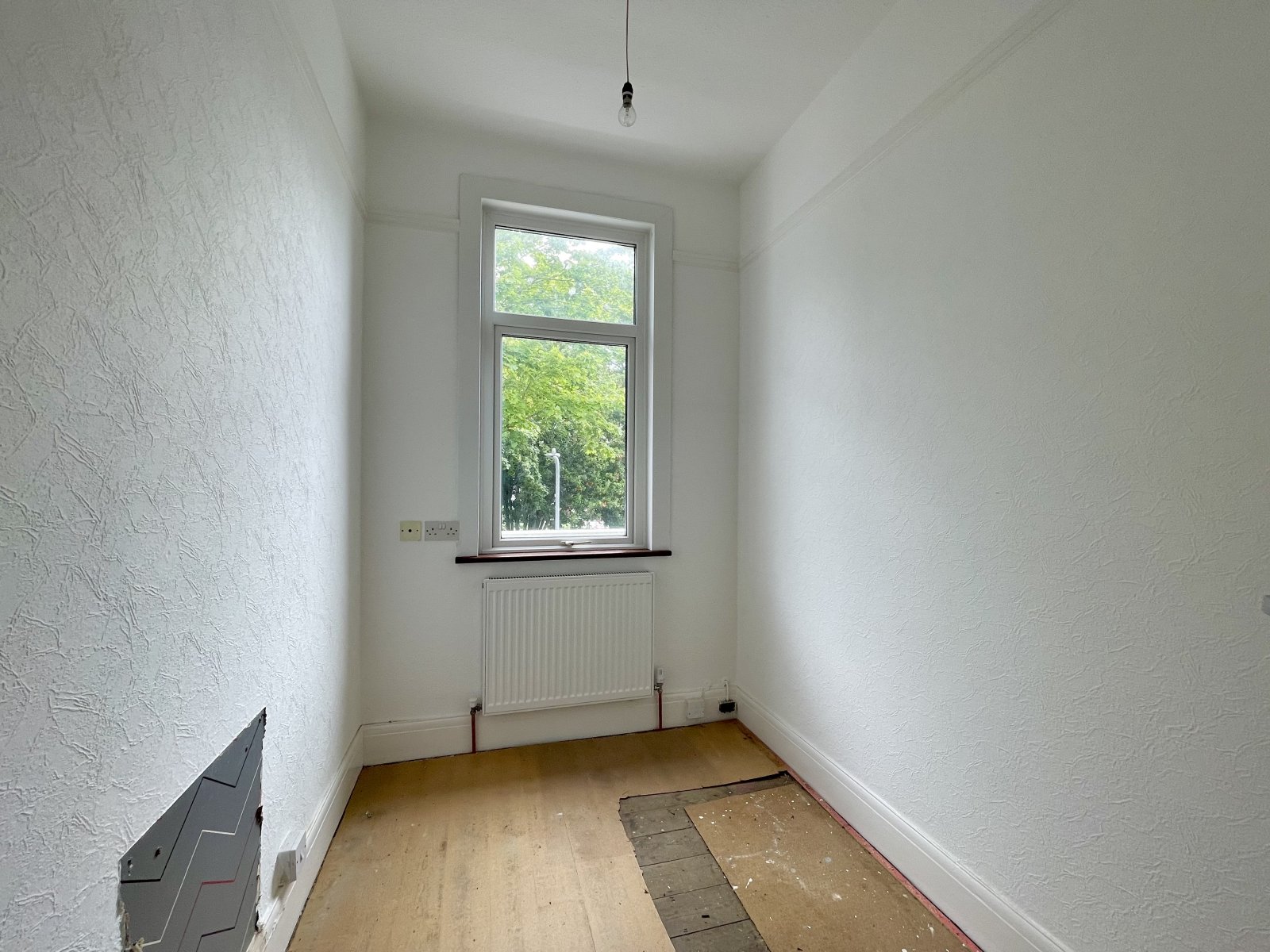 UPVC double glazed window to front overlooking park. Wall mounted radiator. High level skirting. Feature picture rail.