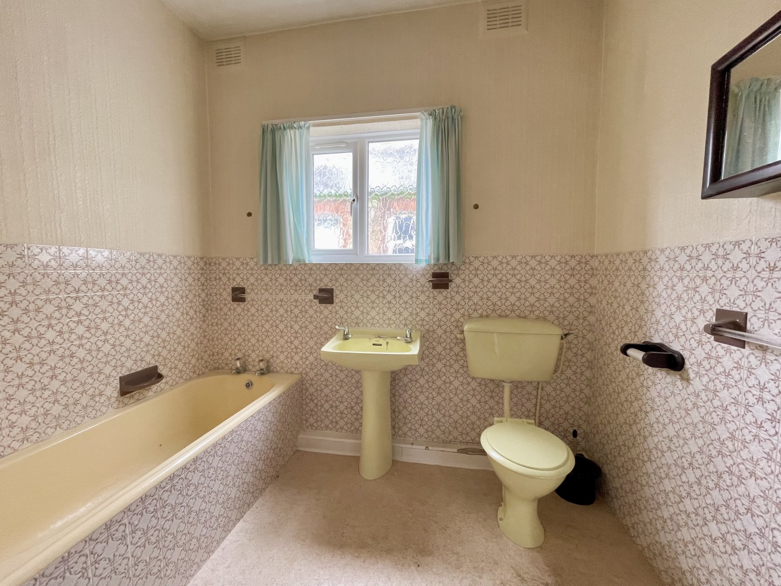 Double obscured glazed window to side. Bathroom is fitted with a four piece suite comprising low flush WC, pedestal wash basin, panelled bath and enclosed shower cubicle with wall mounted electric shower, adjustable showerhead, glass shower screen. Chrome heated towel rail. Part tiled walls. Vinyl floors.