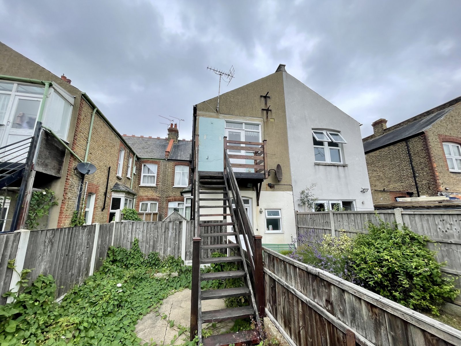 The property benefits from a private section of rear garden with direct stair access from kitchen. Large timber frame storage shed to remain. Access to rear. Laid to concrete hard standing with wooden balcony to rear of kitchen. Outside water supply.