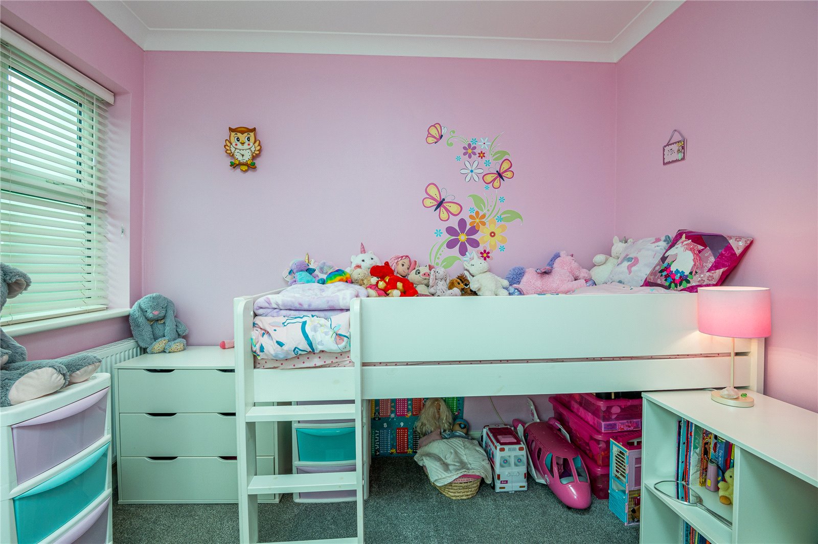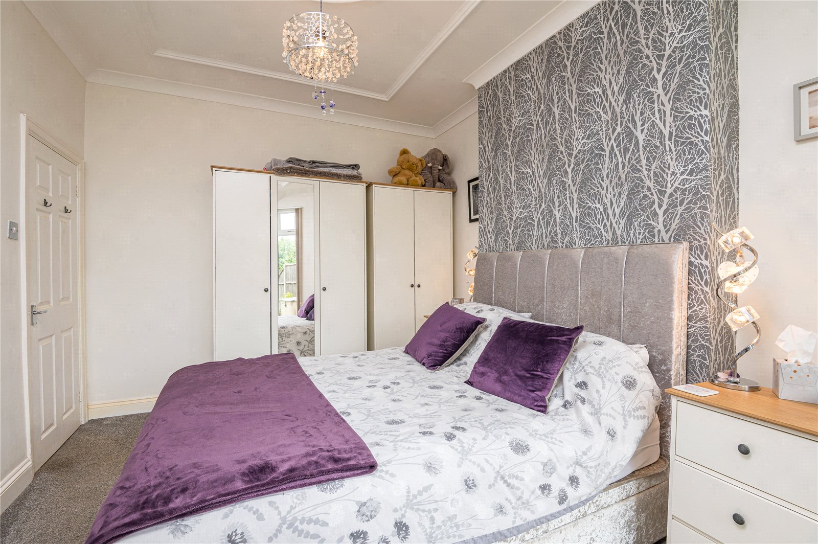 UPVC double obscured glazed window to rear. Further double glazed window to side. Wall mounted radiator. Fitted wardrobe unit incorporating gas fired combination boiler. High level skirting. Coved cornice to smooth plastered ceilings with recessed LED lighting.