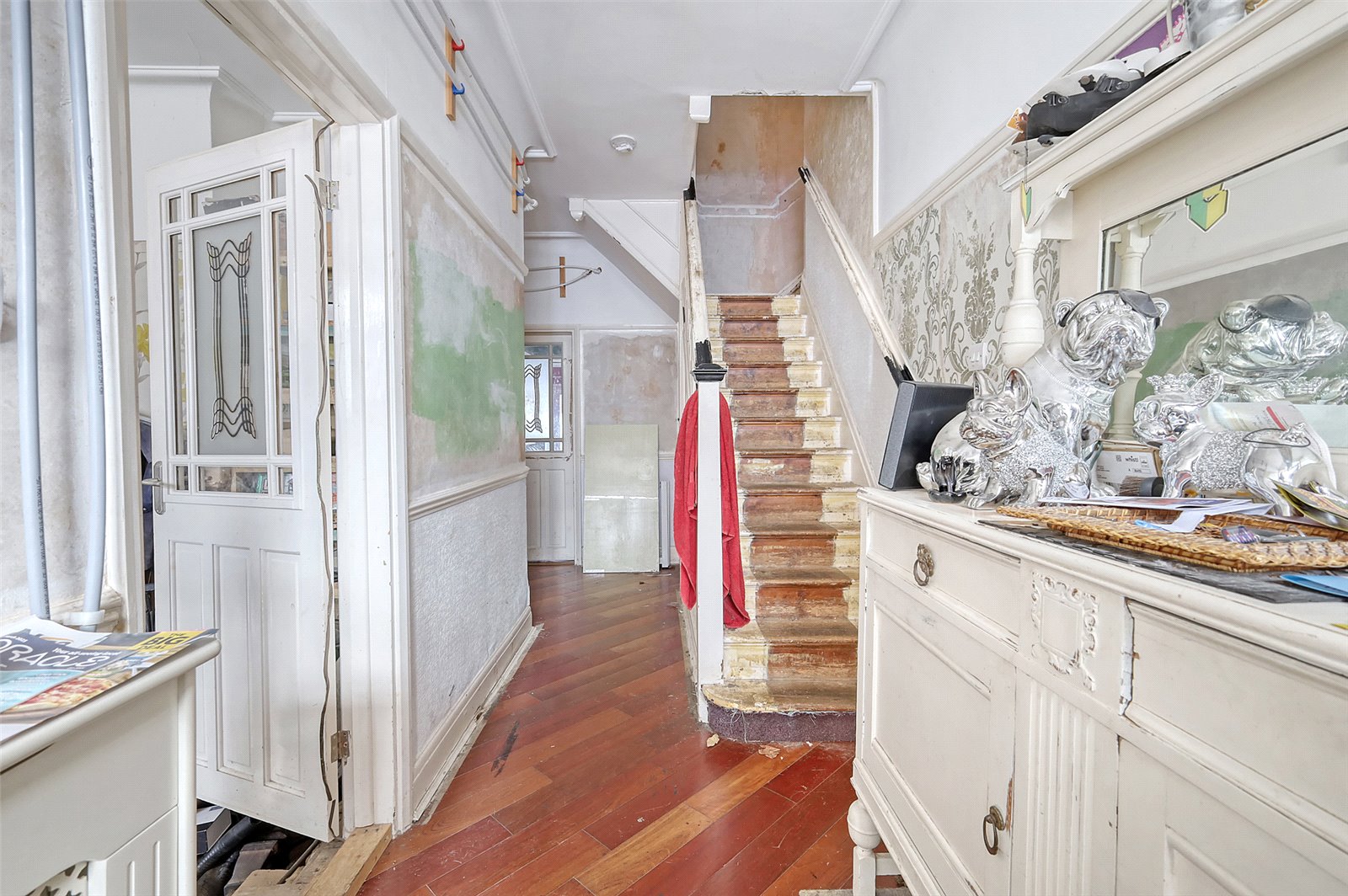 Approached via hardwood front door with inset glazed panel, obscured windows adjacent. Doors lead off to ground floor rooms. Stairs rising to first floor accommodation. Wall mounted radiator. Under stairs storage cupboard. Wood effect laminate flooring. High level skirting. Feature dado rail. Feature picture rail. Coved cornice to smooth plastered ceiling with feature ceiling rose.