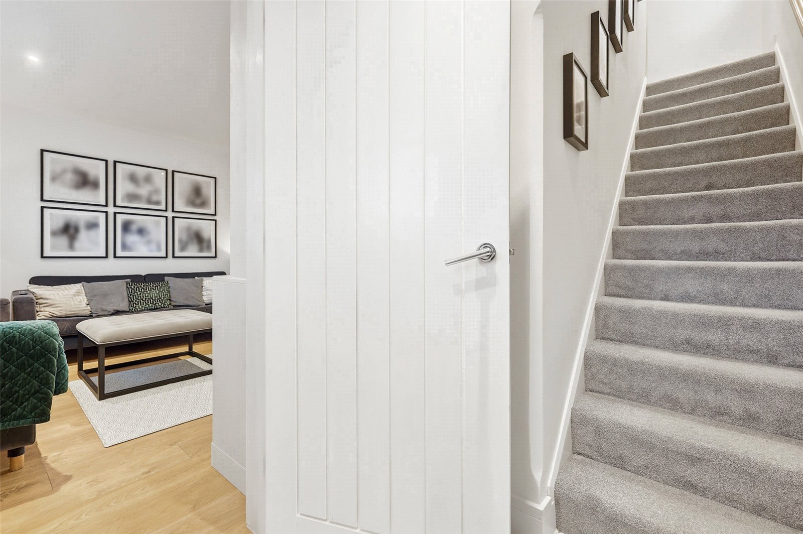 Approached via hardwood front door with obscured glazed leaded light window with fitted shutter. UPVC double glazed leaded light window to front. Door leading off to ground floor accommodation. Stairs rising to first floor accommodation. High level designer radiator. Tiled flooring. High level skirting. Smooth plastered ceilings with recessed LED lighting.