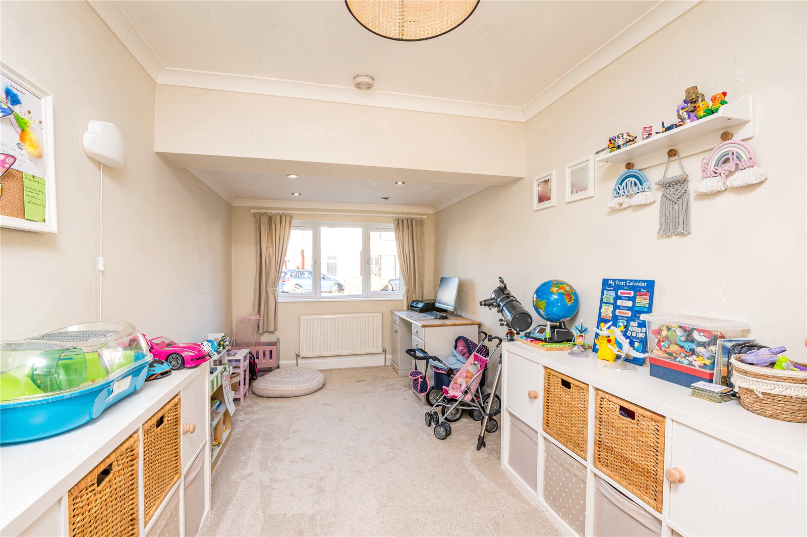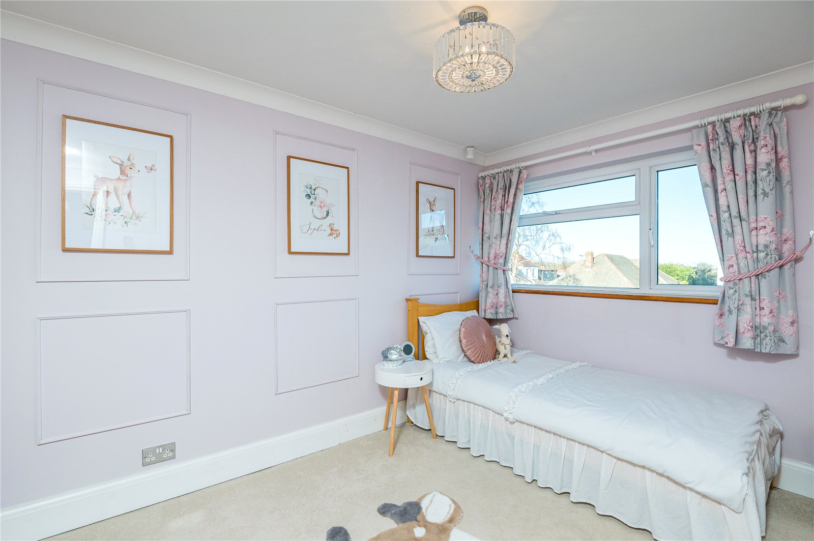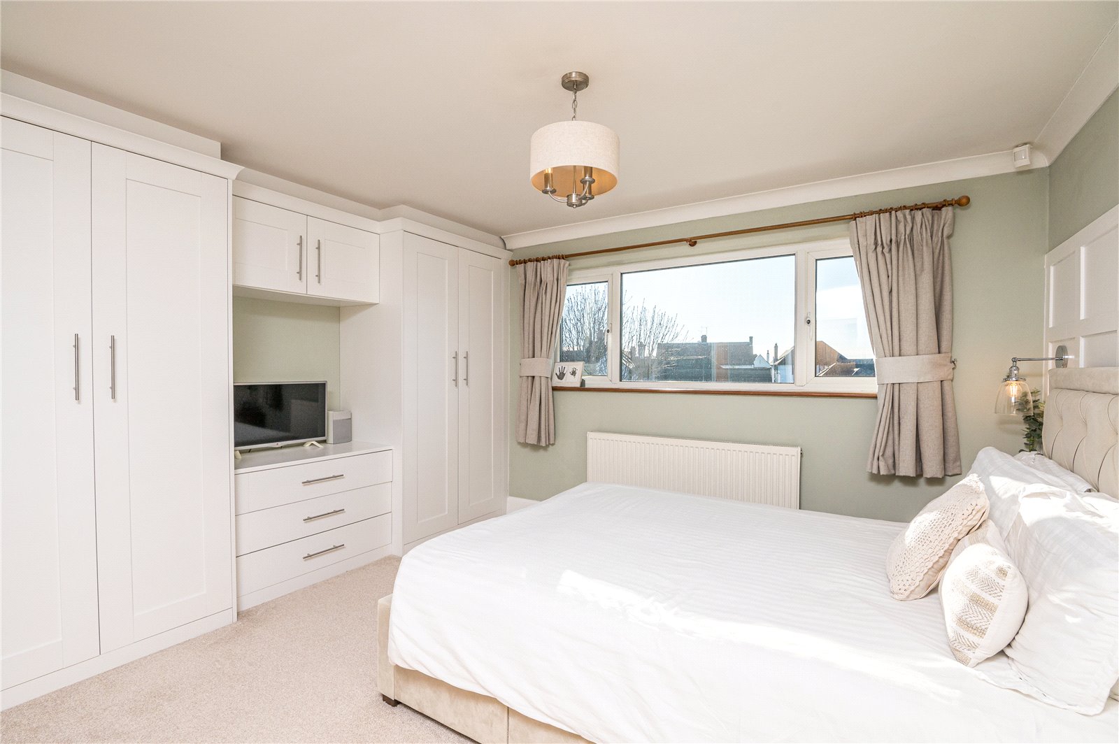 Incorporating extensive range of modern built in wardrobe cupboards and chest of drawers. This bright and spacious principal bedroom has a wide double glazed window overlooking the rear garden. Radiator. Coved ceiling. Feature panelling to one wall. Built in wardrobe cupboard.