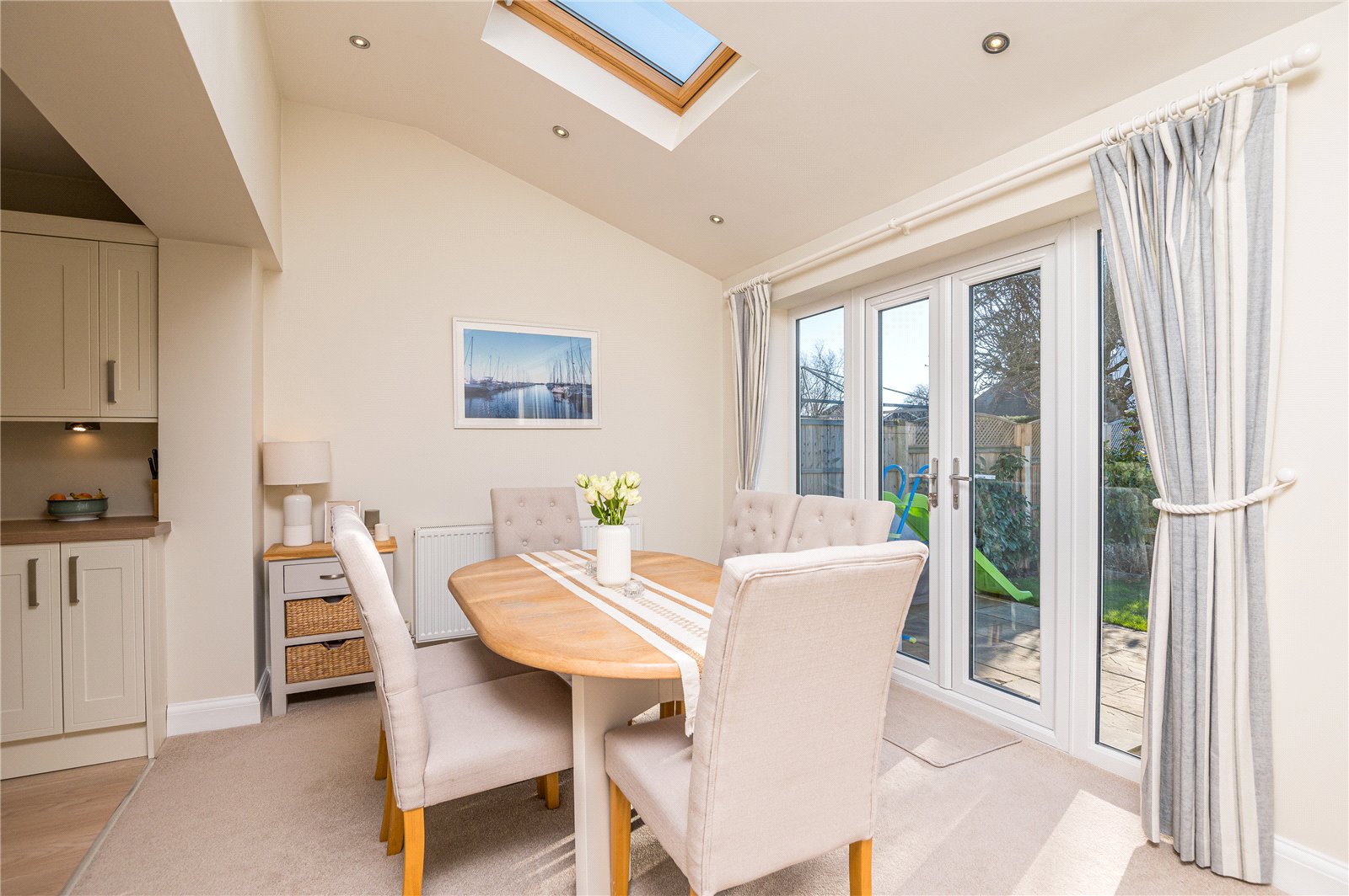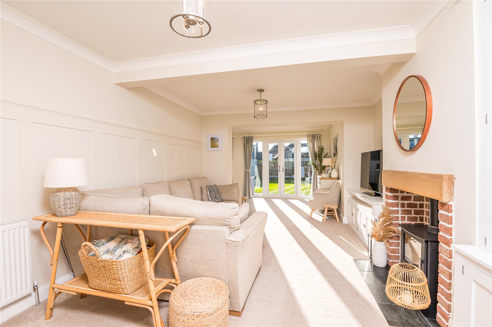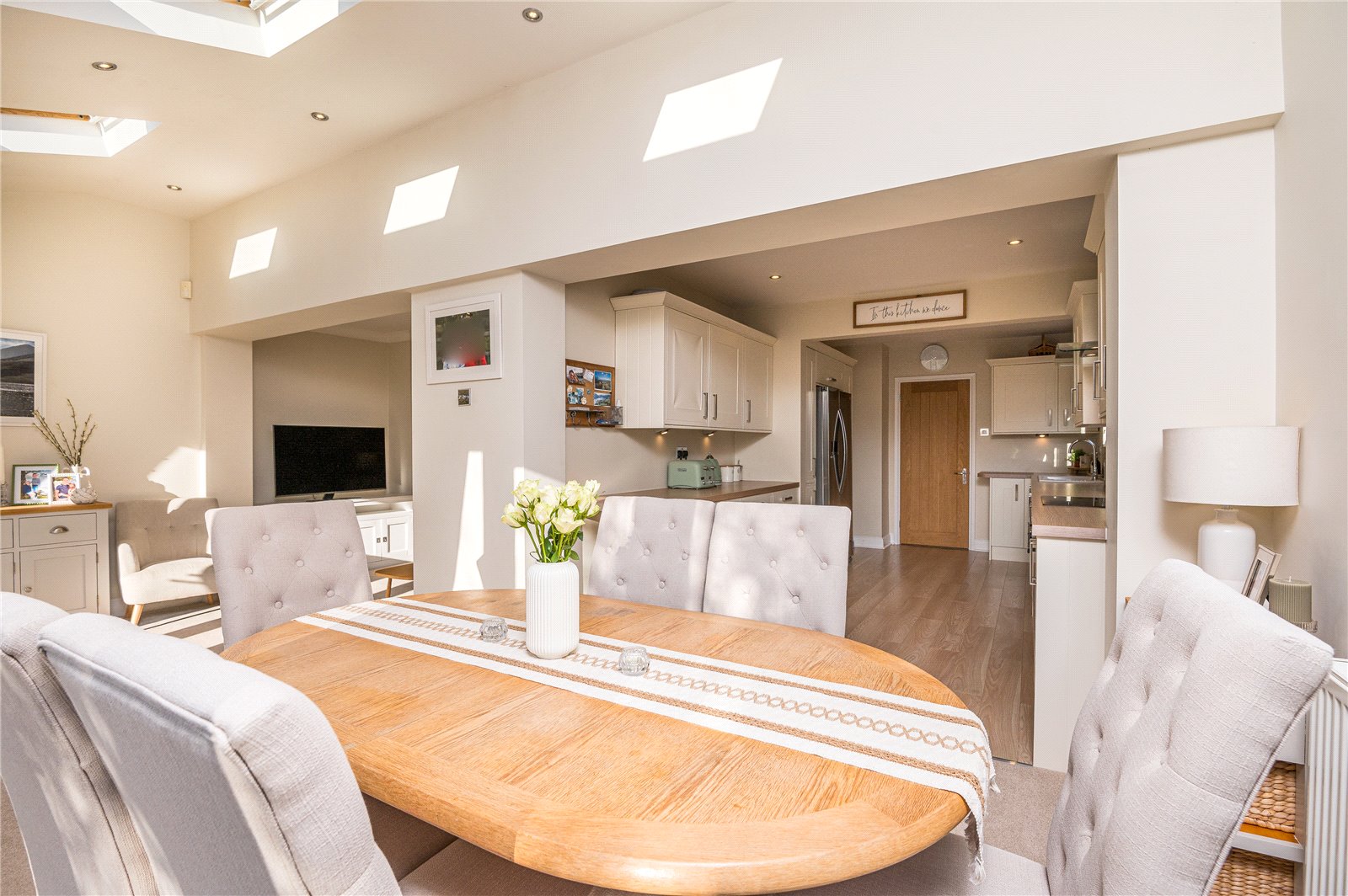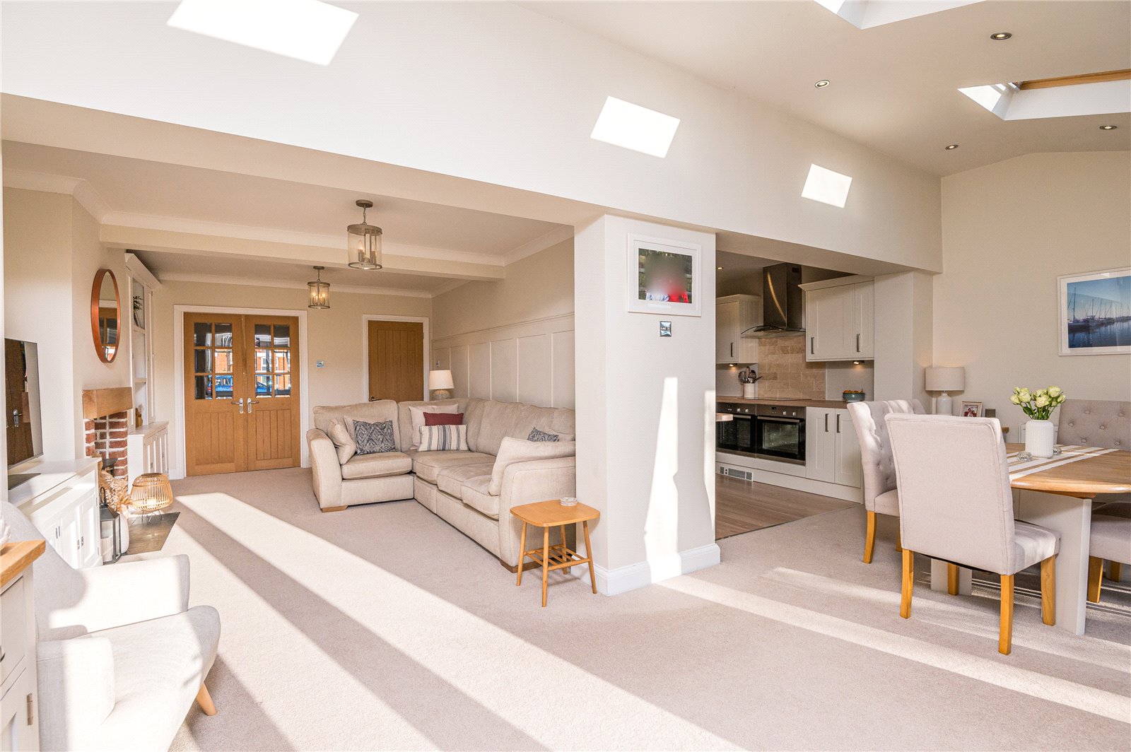 The lounge, dining room and kitchen combine to create a wonderful open plan living space which seamlessly connects to the South backing rear garden.