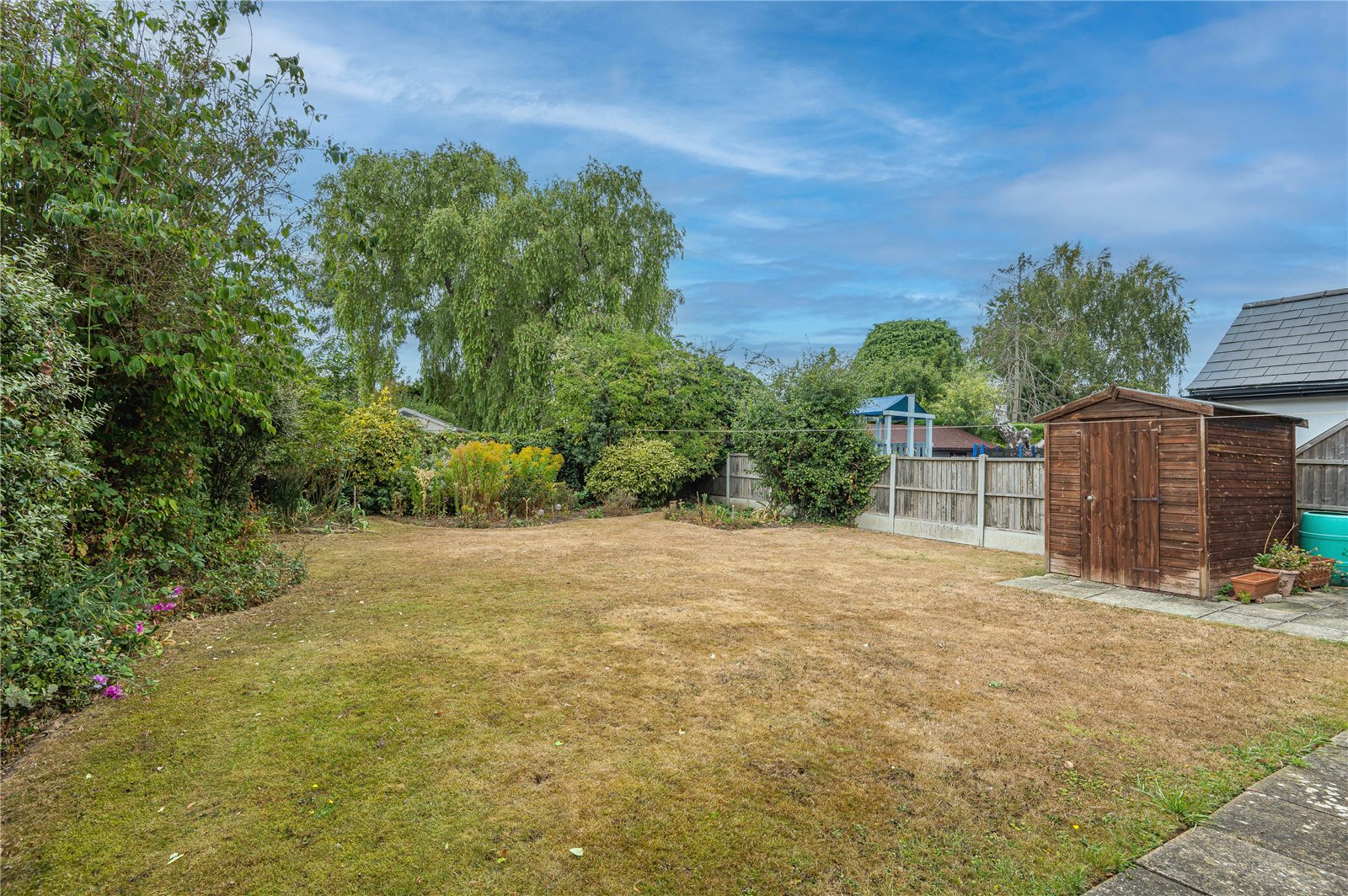 Property benefits from a good size West backing rear garden which is unoverlooked, beautifully established and laid mainly to lawn. Paved patio areas. Planted borders with maturing trees and shrubs. Timber garden shed. Side entrance.