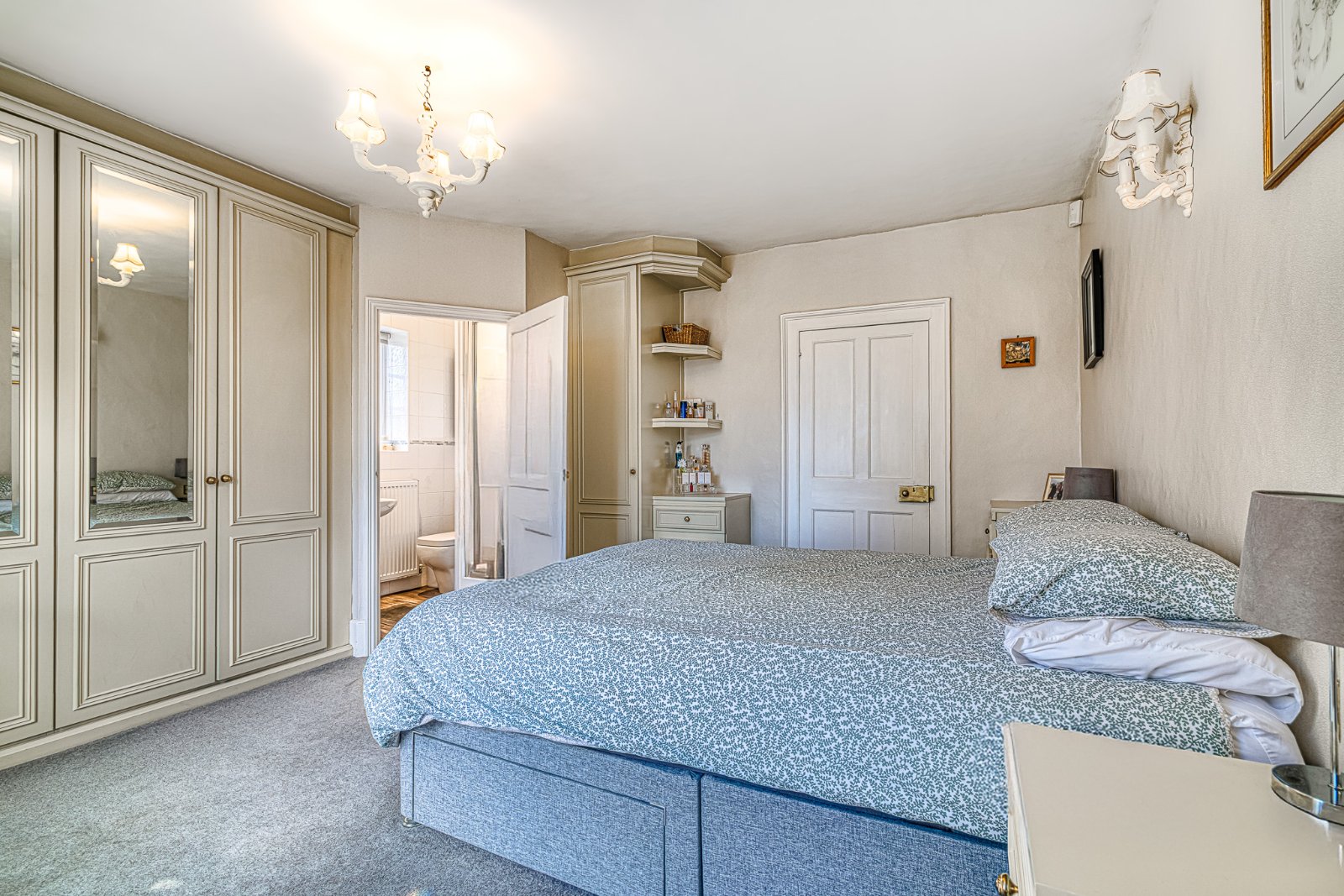 A feature south facing large sash window allows natural light to flood the room. The bedroom offers a range of fitted wardrobes with mirrored panels. Ceiling and wall-mounted lighting. A doorway leads directly to the Ensuite, while a further door with steps provides access down to an additional expansive Bedroom / Dressing Room, offering excellent flexibility.