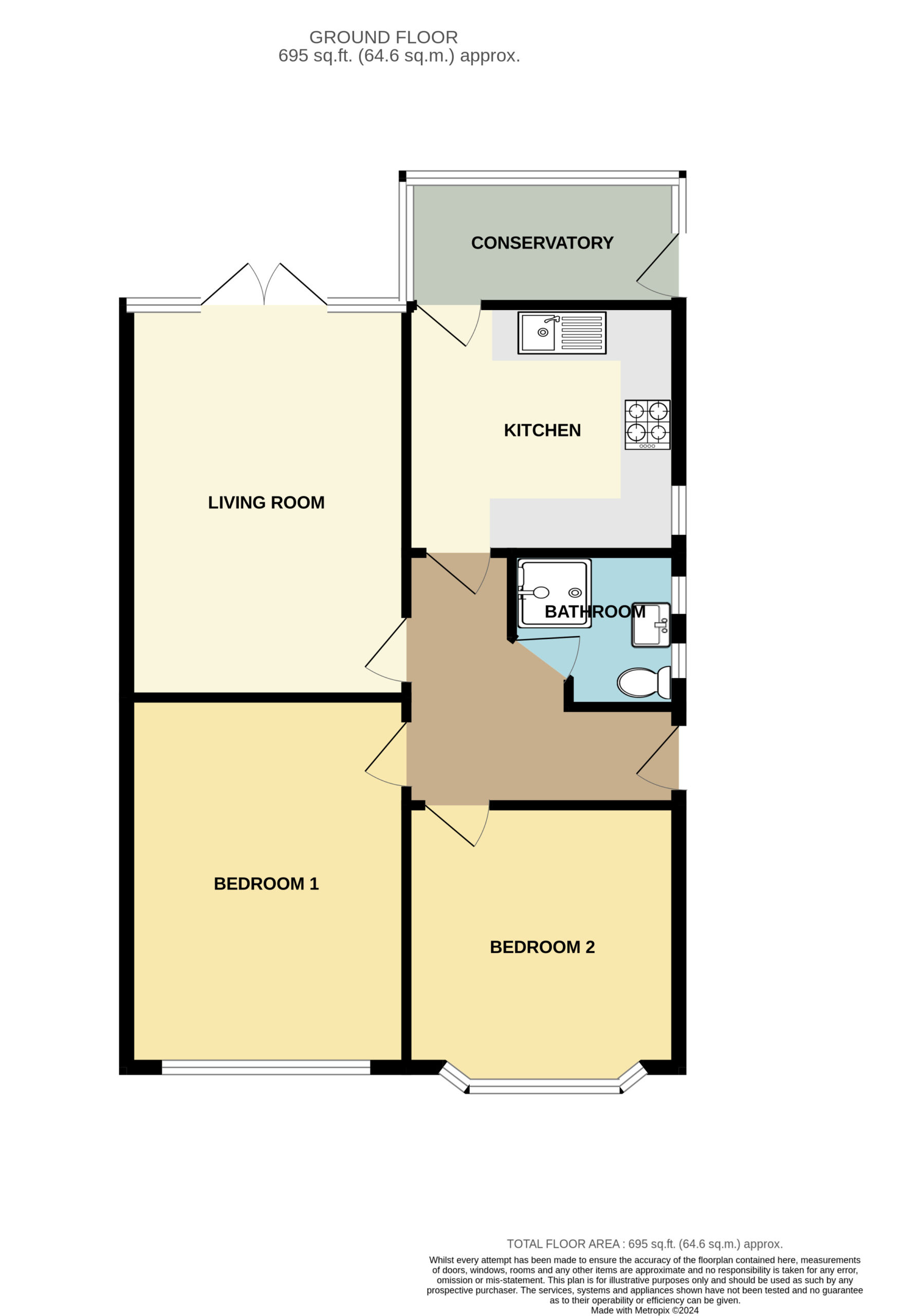 With the potential for a driveway with correct permission the front garden is currently laid to lawn, with pathway to front door.