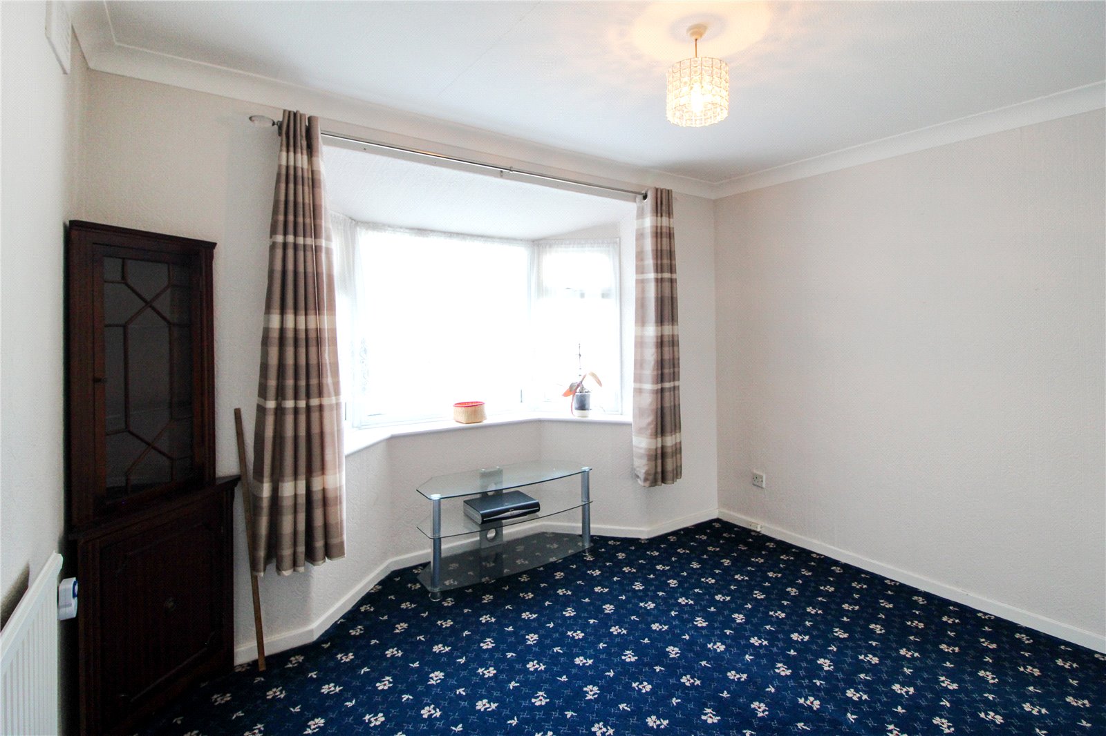 Carpet to floor, double glazed bay window to front aspect, radiator, ceiling light.