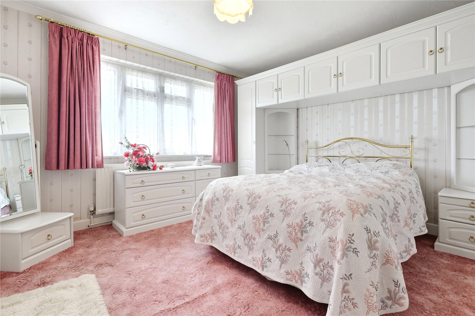 This bright double bedroom enjoys a dual aspect with double glazed windows to front and to side. Built in wardrobe cupboards. Radiator. Coved ceiling.