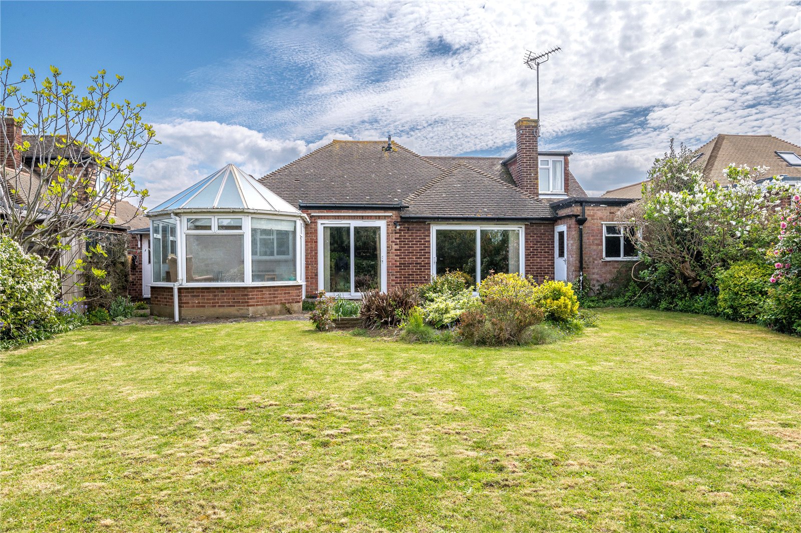 This attractive double fronted detached chalet bungalow is situated in a delightful West backing setting, within the sought after Burges Estate. Only a short walk to the beach, Broadway shops and mainline railway station. This deceptively large property has three double bedrooms, three bathrooms plus three reception areas. Occupying a wider than average plot with a large secluded rear garden and double length garage. In need of some updating and offered with no onward chain - A Must View!