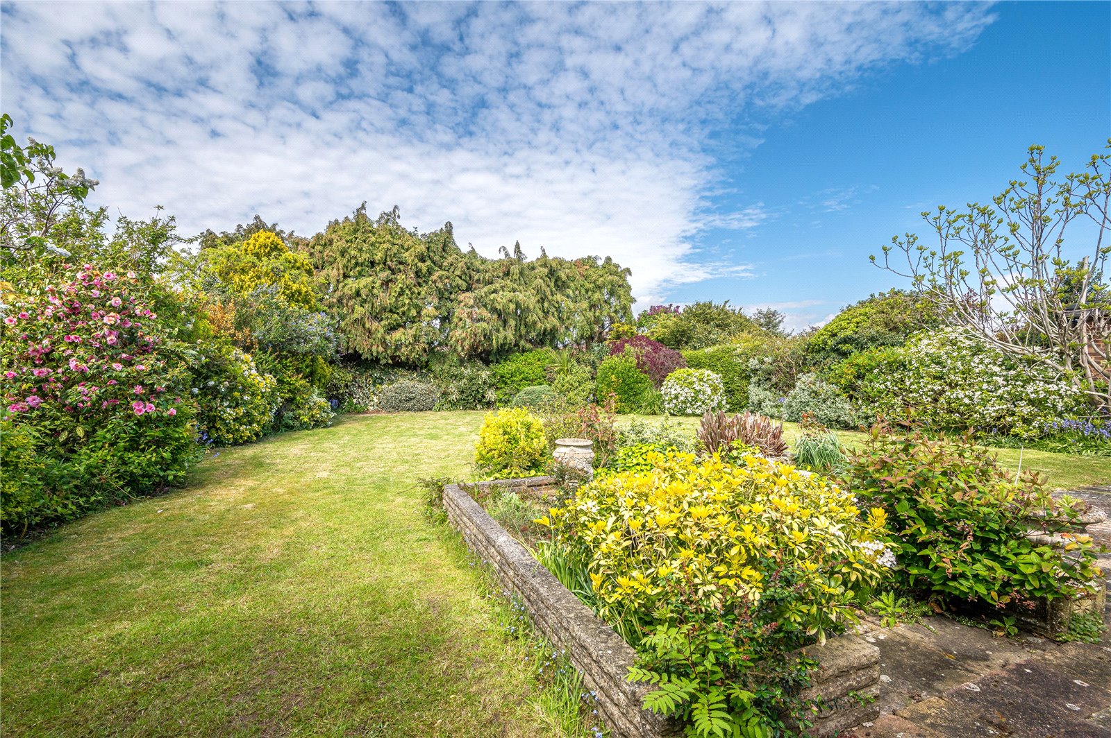 The property benefits from a large and beautifully established West backing rear garden which is nicely secluded and laid mainly to lawn. Well stocked borders with mature trees and shrubs. Paved patio areas.