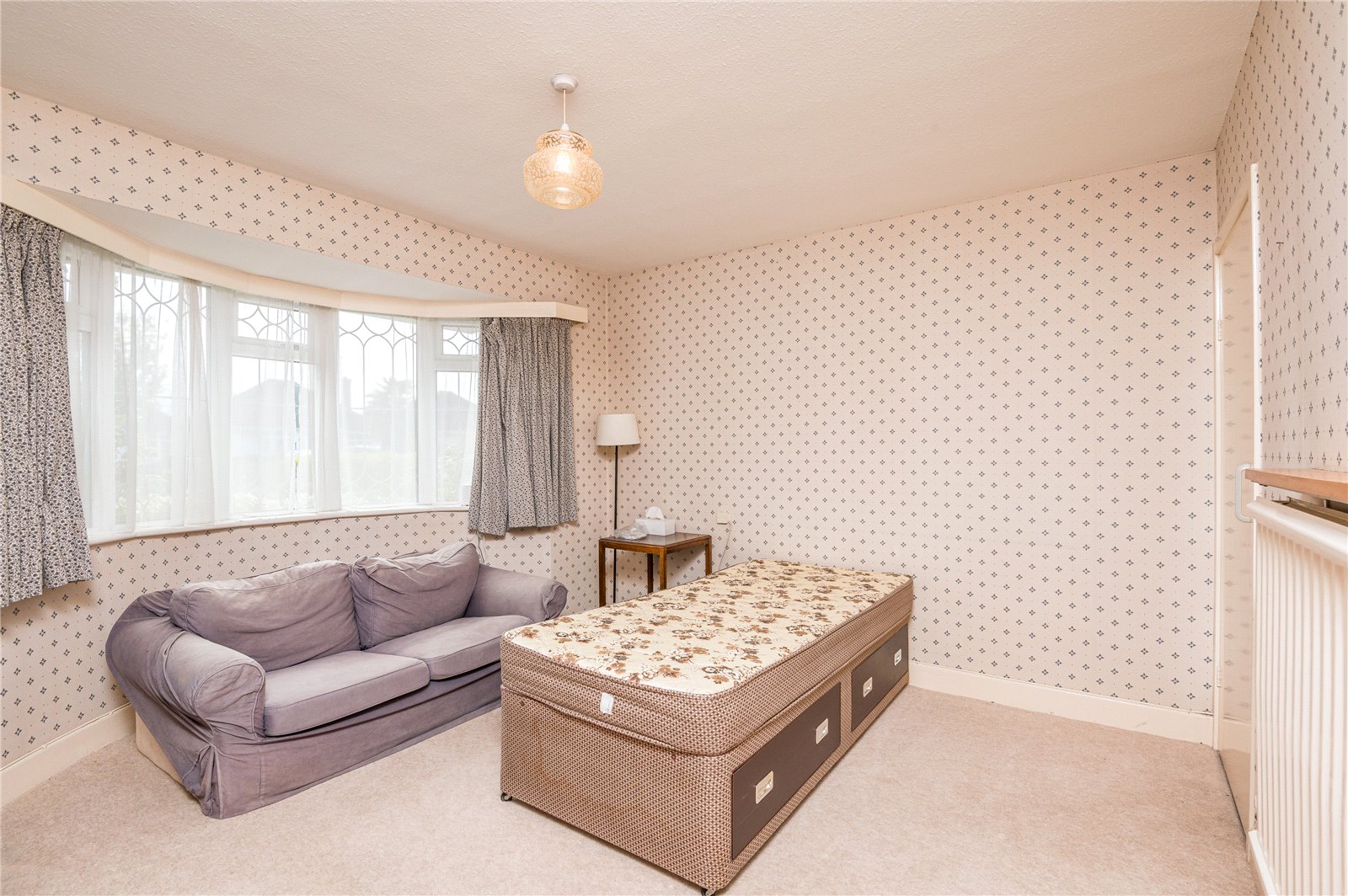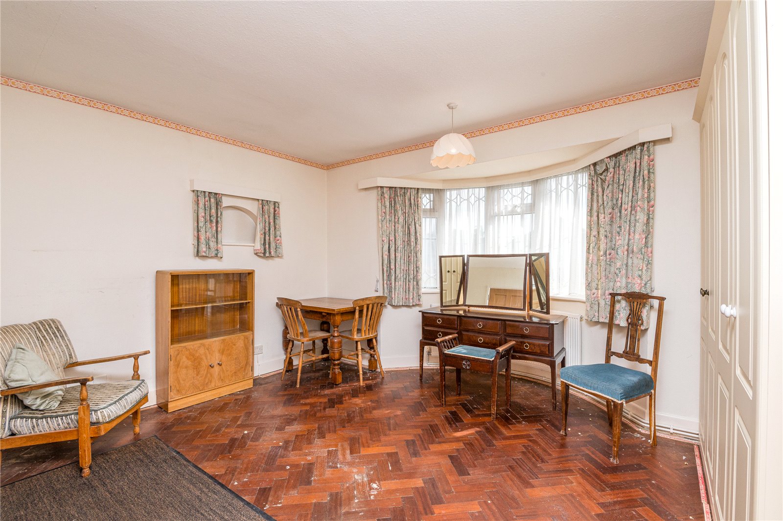 plus large built in storage cupboard. Wide double glazed curved bay window to front. Radiator.