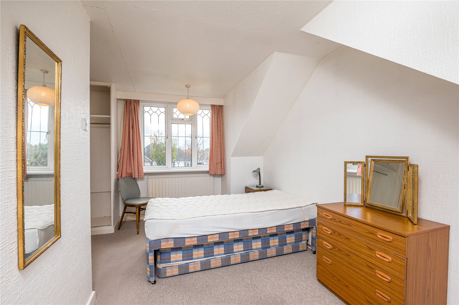 overall size. This bright double bedroom enjoys a dual aspect with double glazed windows to front and rear overlooking the garden. Two radiators. Doro to: